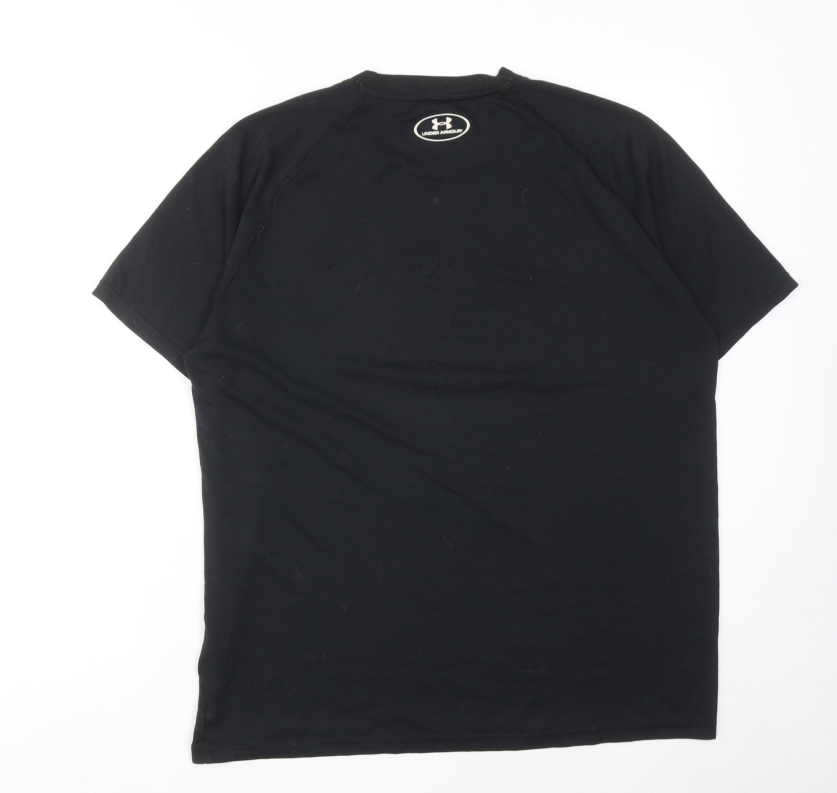 Mens Black Polyester T-Shirt Size L Round Neck