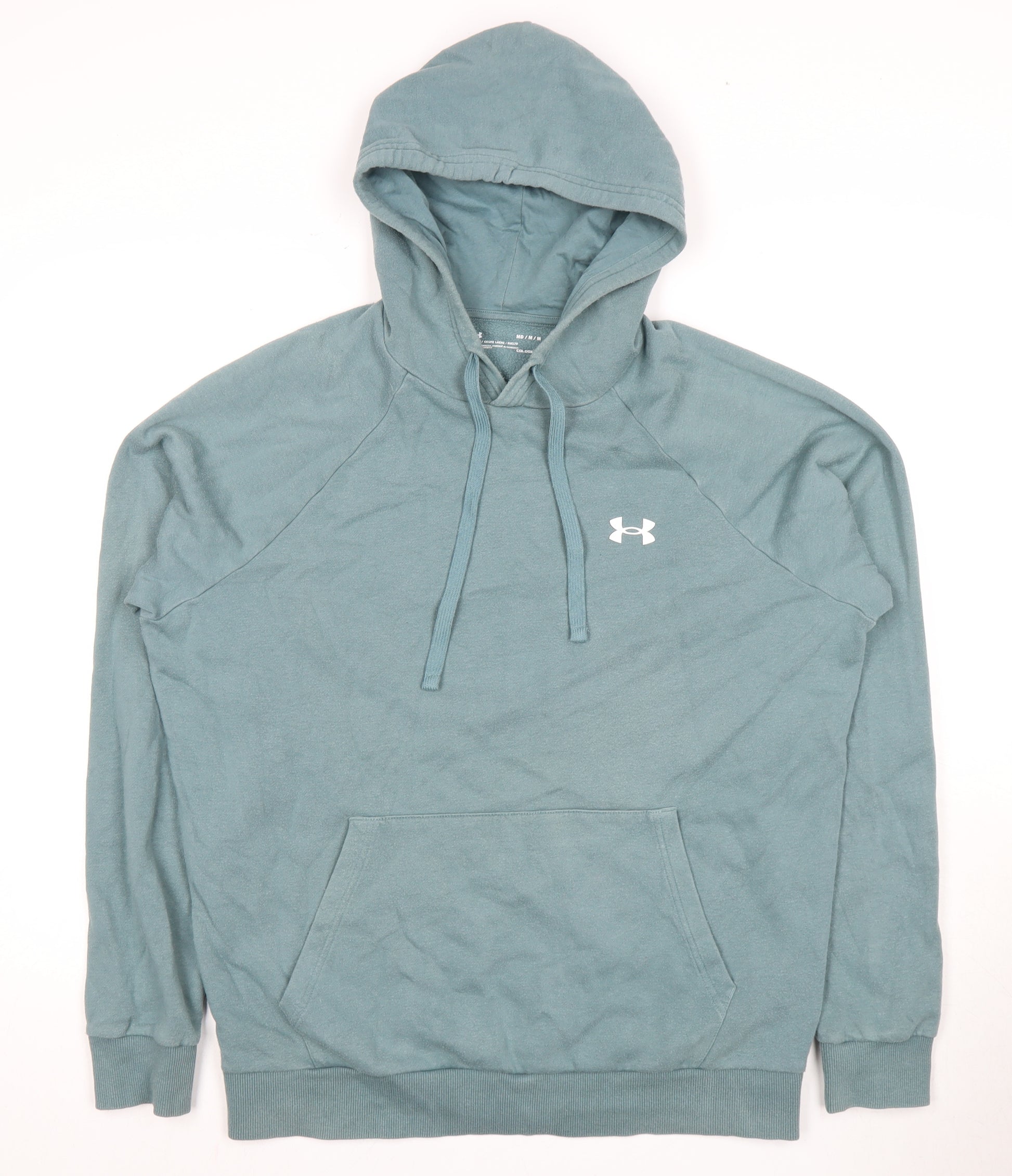 Experience unbeatable comfort and style with this Under Armour men's pullover hoodie, perfect for those chilly days and intense workouts. Crafted from a high-quality blend of 75% cotton and 25% polyester, it offers a soft fleece feel that keeps you warm while remaining breathable. Its relaxed fit ensures unrestricted movement whether you're running, jogging, or just lounging. The hoodie features a classic green colour with the iconic Under Armour logo, adding a stylish touch to your sporty look.With its convenient drawstring closure and spacious front pockets, this hoodie is both functional and fashionable. Embrace the outdoors with confidence, thanks to its lightweight yet insulated design tailored for autumn and winter adventures. Suitable for both casual wear and athletic activities, it demonstrates versatility at its best.Machine washable, this hoodie assures easy care and long-lasting wear, maintaining its superb quality through every wash. Available in medium size, it fits comfortably while providing ample coverage and warmth.Don't miss the chance to add this versatile Under Armour hoodie to your wardrobe. Its compelling combination of comfort, style, and performance makes it a must-have for every active lifestyle enthusiast.