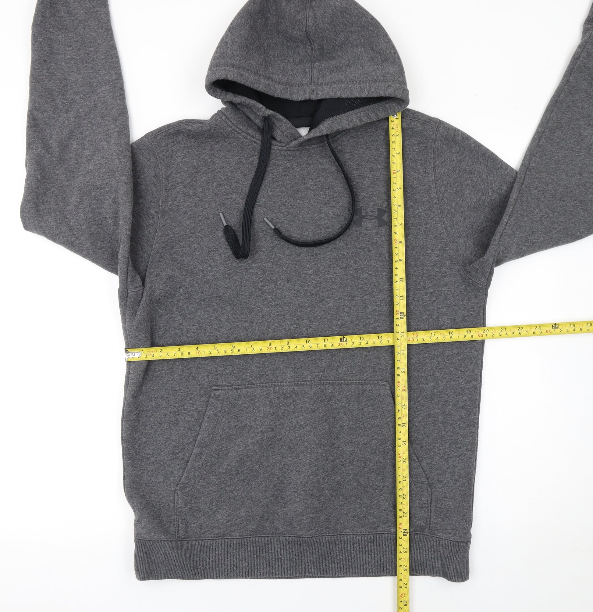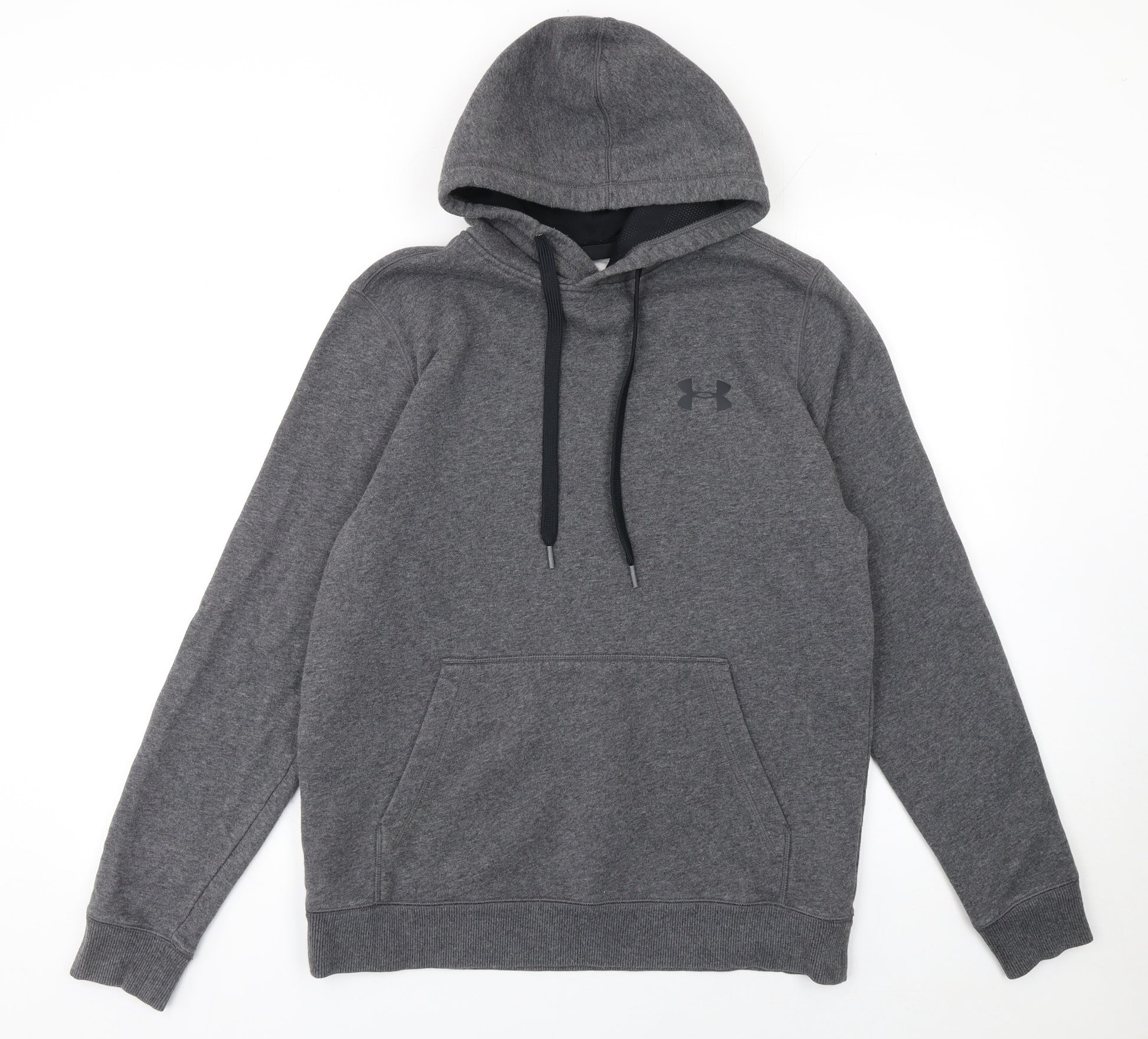 This Under Armour Men’s Grey Pullover Hoodie is a perfect blend of performance and comfort for everyday wear or workouts. Designed in a soft fleece fabric with a brushed interior, it keeps you cosy during cooler weather without compromising breathability. The hoodie comes in classic mid-grey with an understated logo accent on the chest, lending a sleek, athletic look. Cut in an athletic fit, it delivers a flattering silhouette while allowing freedom of movement. The hoodie features a drawstring closure and a kangaroo front pocket that add practicality for keeping hands warm or storing small essentials.Made from a premium blend of 75% cotton and 25% polyester, this hoodie combines the durability of polyester with the comfort and softness of cotton. The moisture-wicking fleece material helps regulate body temperature, making it ideal for gym workouts, running, or everyday casual wear. The lined hood and ribbed cuffs enhance comfort and provide a secure fit. Designed as part of the Under Armour ColdGear range, this hoodie is intended to keep you comfortably warm while managing moisture and maintaining breathability.The hooded design, clean styling, and minimal branding make it a versatile piece for layering under a jacket or wearing on its own. Whether heading to the gym, going for a run, or spending a relaxed weekend outdoors, this hoodie delivers reliable warmth and comfort in all seasons except for the peak of summer. In excellent condition, it shows only light signs of use with no visible defects. A great choice for the contemporary man seeking a balance of performance, style, and everyday practicality, this Under Armour hoodie is a wardrobe essential.Ideal for casual, athletic, or outdoor activities, this hoodie offers both style and substance. Machine washable for easy care and ready to wear right away, it’s a go-to staple for those who value quality and functionality in equal measure.