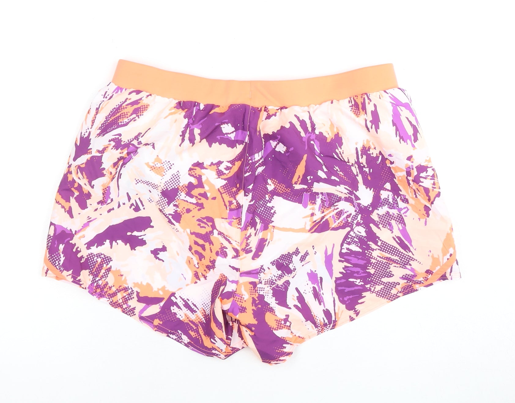 Elevate your workout wardrobe with these Under Armour Women's Activewear Shorts, perfect for running and gym sessions. Showcasing a vibrant abstract pattern in hues of orange and purple, these shorts will not only add a pop of colour to your activewear collection but also ensure comfort and functionality during your workouts. Crafted from high-quality polyester and elastane, the shorts are lightweight and breathable, making them ideal for summer activities. The relaxed fit and elastic waist provide ease of movement, while the moisture-wicking fabric keeps you dry and comfortable. Designed for active women, these shorts seamlessly blend style and performance. With their new condition and original tags, they offer great value, making them a must-have for your active lifestyle.