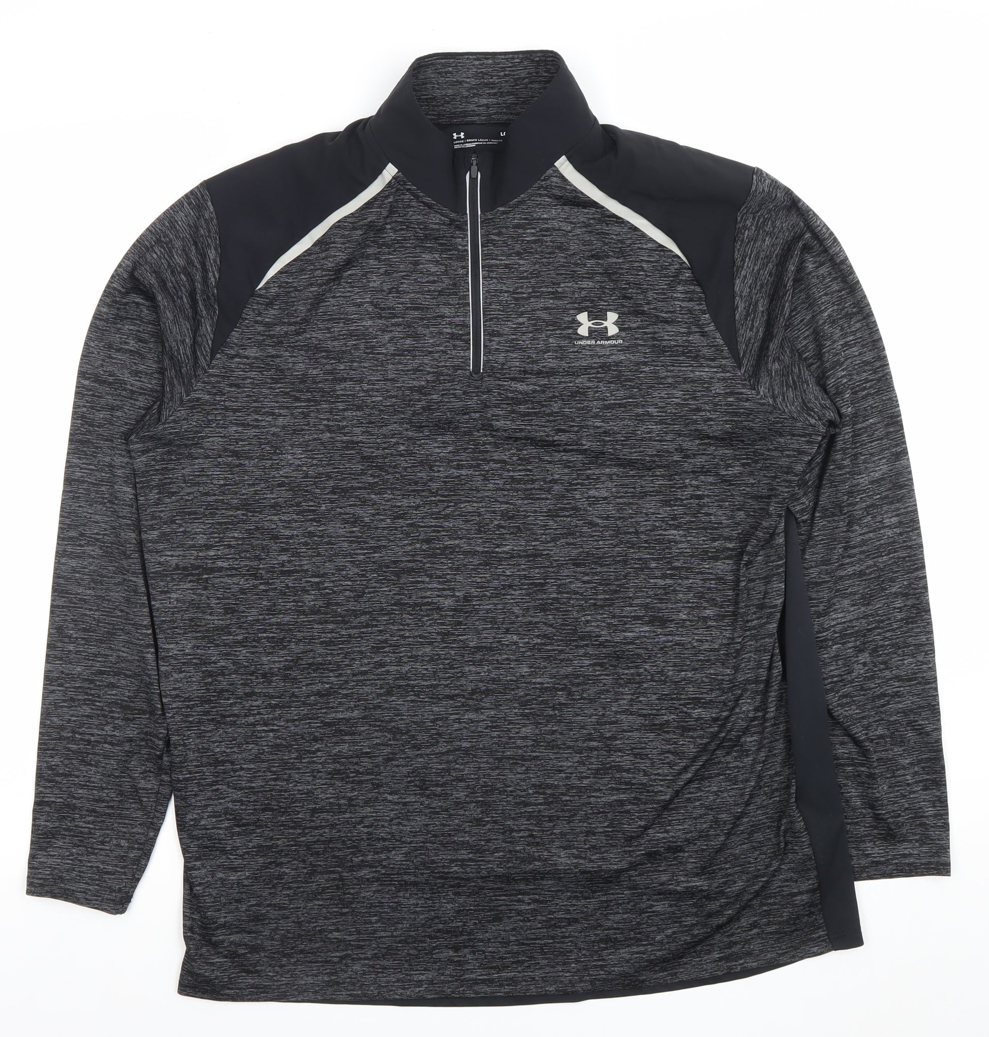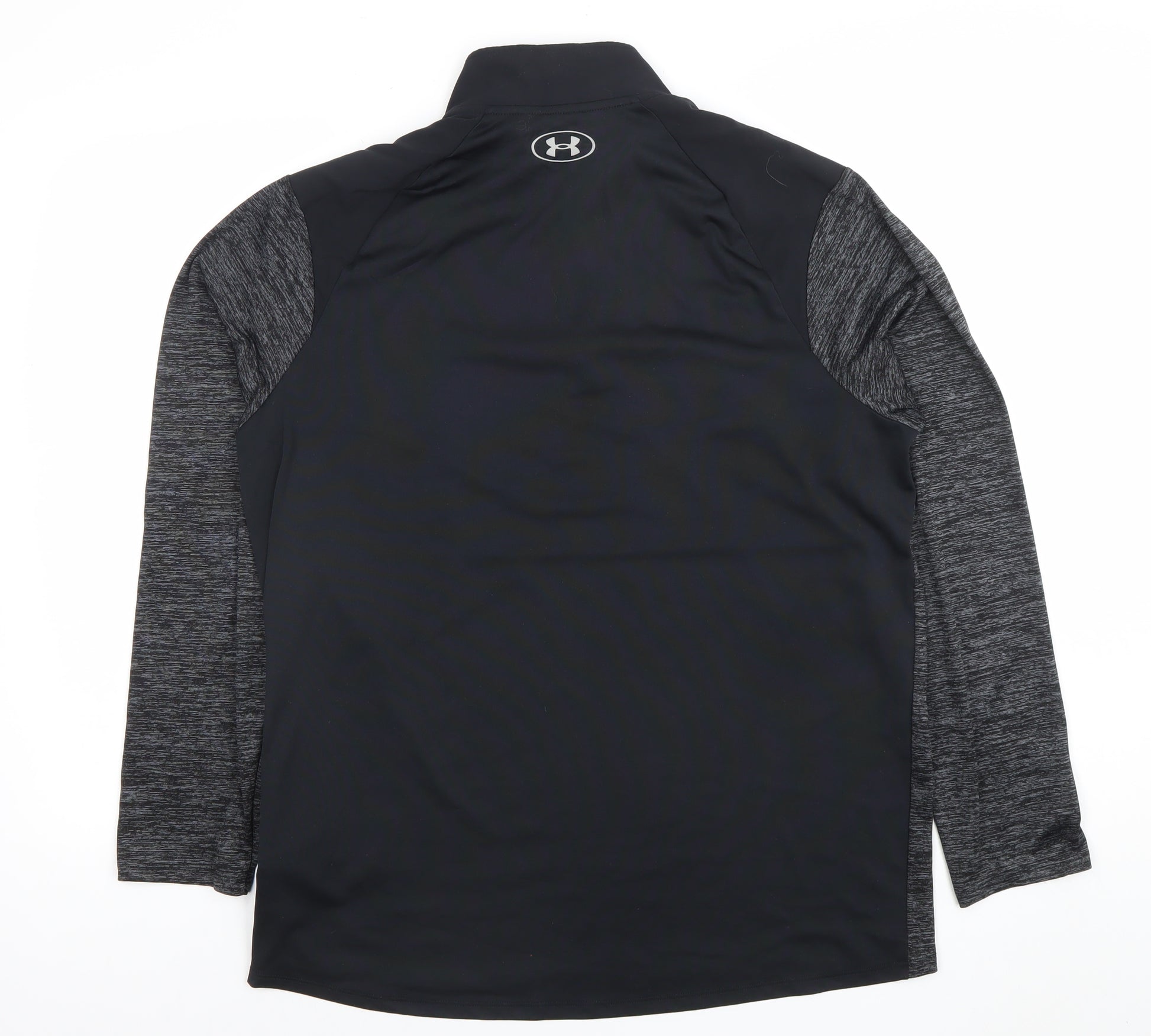 Stay comfortable and confident in this Under Armour women’s long sleeve running top, designed for those who demand both performance and style. Crafted from a smooth, lightweight blend of polyester and elastane, this activewear top offers great stretch and breathability, allowing you to move freely during any activity. The high neck with a 1/4 zip closure offers adjustable comfort and ventilation, while the moisture-wicking technology ensures that sweat is quickly drawn away from your skin to keep you cool and dry. The black design with tonal texture and contrast panel detailing gives it a sleek and modern appeal suitable for gym workouts, running, or casual layering.Cut in a relaxed loose fit, this top provides a flattering silhouette without compromising freedom of movement. The raglan sleeves enhance mobility for performance-based activities like yoga, jogging, or gym training. Soft to the touch yet durable, the material stands up well to intensive wear, ideal for your training rotation. This Under Armour piece boasts a subtle yet recognizable logo on the chest and back, giving it a sporty, authentic finish.Machine washable for ease of care, this long sleeve activewear top transitions seamlessly from outdoor training to indoor sessions or casual wear. Suitable for autumn, winter, and spring, it’s a practical layer that combines performance engineering with a timeless athletic aesthetic. Whether you’re pushing your limits at the gym or heading out for a jog, this top ensures lasting comfort and a polished sporty look.An excellent condition piece with minimal signs of use, this high-quality Under Armour top still retains its sleek structure and soft touch. Perfect for adding to your collection of reliable and stylish sportswear staples.