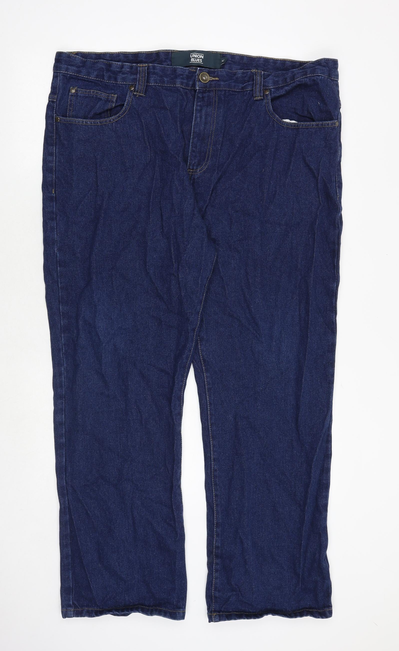 Mens Blue Cotton Straight Jeans Size 42 in Regular Zip