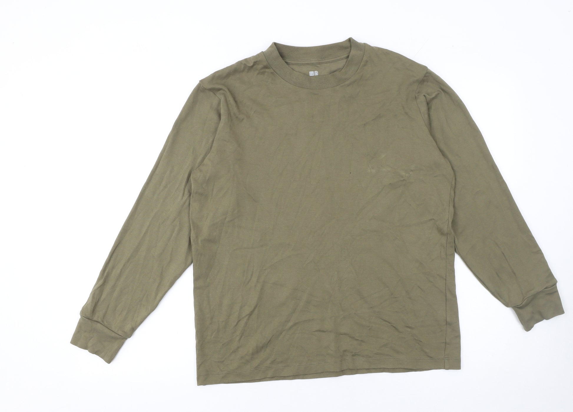 This Uniqlo men’s long sleeve T-shirt is a reliable staple for any wardrobe, offering both comfort and effortless versatility. Crafted from 100% cotton jersey, it provides a soft, breathable feel ideal for year-round wear. Designed in a classic crew neck style, this green top delivers a timeless look that pairs easily with jeans, chinos, or joggers for a relaxed everyday outfit. The regular fit ensures ease of movement without losing its clean silhouette, while the fine rib crew neckline and cuffed sleeves add structure and subtle detailing. The solid olive-green colour gives it a modern yet understated appeal, perfect for layering under jackets and shirts or wearing on its own through the transitional seasons. Known for Uniqlo’s reputation for quality basics, this piece combines practicality with minimalist design, balancing comfort and durability. It’s machine washable for easy care and built to withstand frequent wear. Suitable for autumn, winter, spring, or summer evenings, this T-shirt transitions smoothly across different temperatures. Its breathable cotton fabric helps regulate comfort, making it an excellent choice for casual days, lounging, or outdoor activities. The item remains in excellent used condition with only light signs of wear and slight creasing, with no visible stains or damage. A dependable essential that reflects Uniqlo’s mastery of functional simplicity, this long sleeve T-shirt will become a go-to favourite in any man’s wardrobe, offering endless styling options and lasting everyday performance.
