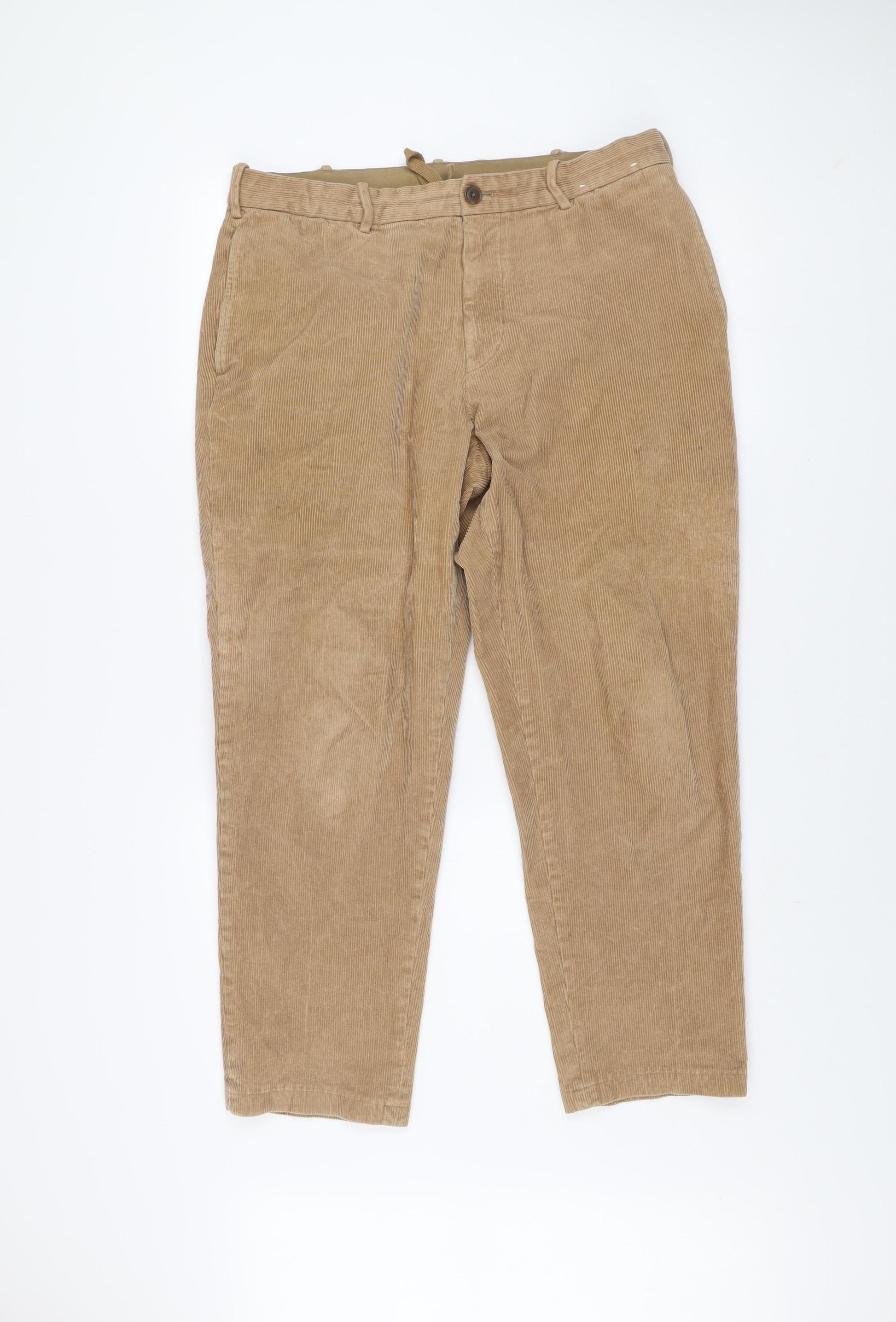 Men's Beige Corduroy Chino Trousers L 33in Regular Fit