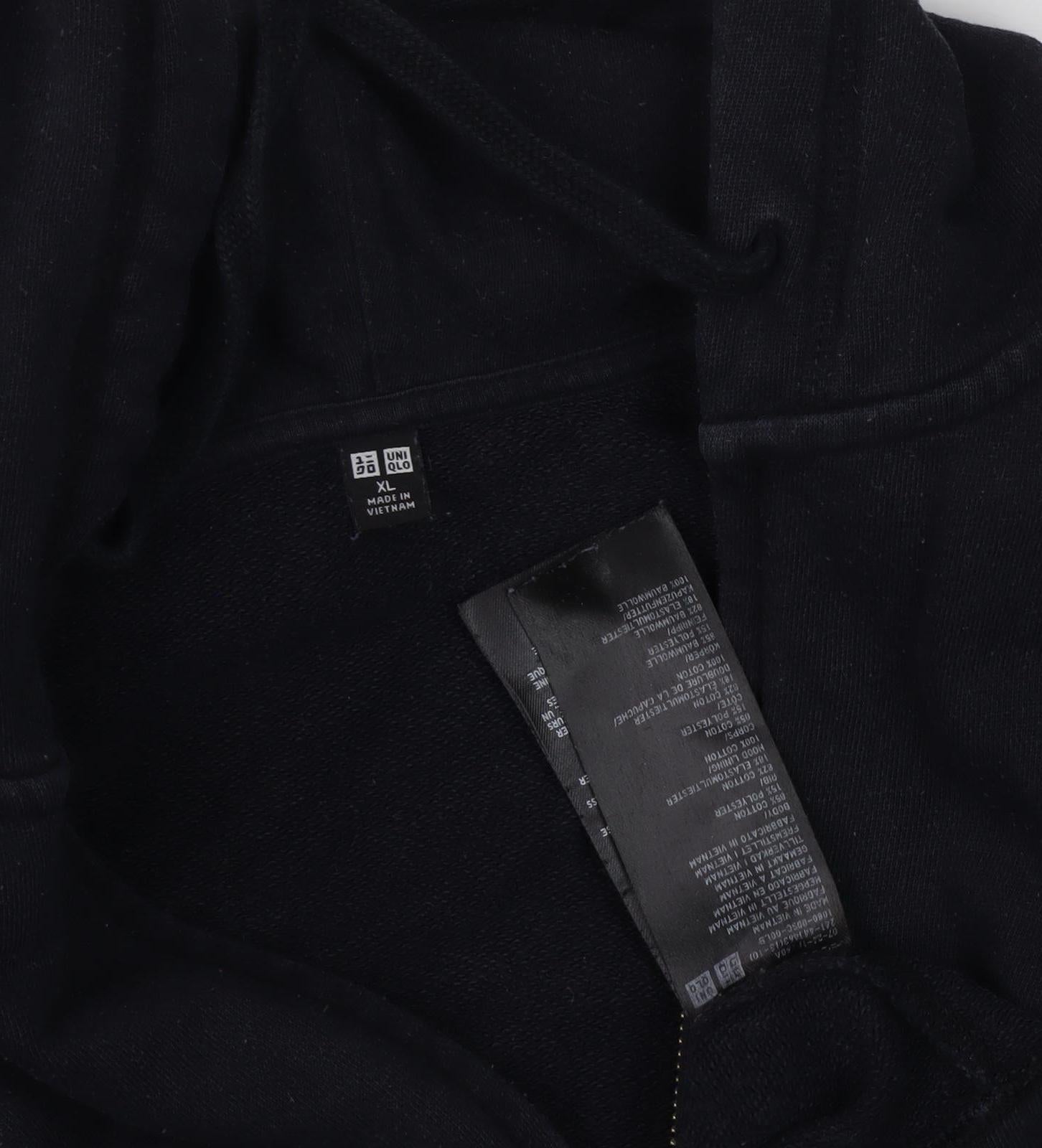 Elevate your casual wardrobe with this UNIQLO Men's Black Full Zip Hoodie, available in XL. Made from a soft fleece fabric with 90% cotton and 10% polyester, this hoodie offers a comfortable and cosy feel. The classic black colour ensures versatility, effortlessly matching any outfit. Designed for practicality, the full-zip closure provides convenience while the hooded feature adds an extra layer of warmth. With a regular fit, long sleeves, and a sleek design devoid of patterns, it serves as a stylish yet understated addition to your attire. Suitable for all seasons, this piece maintains its comfort across varying temperatures. Machine washable for easy care, it represents durability and modern style. Despite minor signs of wear, the hoodie is in excellent condition, showcasing its resilience. Ideal for leisurely outings or lounging at home, it’s a staple for any man's wardrobe. Grab this versatile essential and experience the perfect blend of style and comfort.