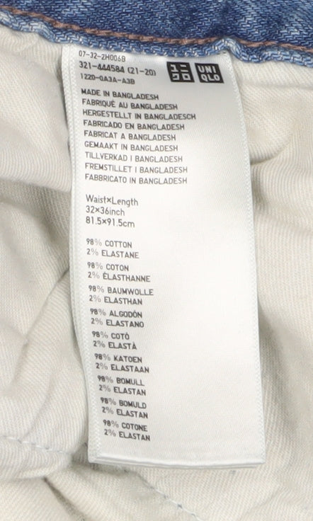 Step into style and comfort with these Uniqlo men's jeans, crafted for those who appreciate both fashion and function. These blue straight-leg jeans are the perfect addition to any wardrobe, offering a classic fit that pairs effortlessly with any ensemble. Made with a blend of 98% cotton and 2% elastane, these jeans promise comfort and a slight stretch for easy movement. The light fabric wash gives them a timeless look, suitable for any season, whether you're heading out for a casual outing or an evening event. The breathable material ensures comfort all day long, while the five-pocket design provides practicality and style. With a waist size of 32 inches and an inside leg of 36 inches, these jeans are ideal for those seeking a relaxed yet tailored fit. The mid-rise waist offers a modern silhouette, flattering a variety of body types. Finished with a button closure, these jeans are easy to wear and maintain. Machine washable, they're designed for hassle-free care, ensuring they remain a staple in your wardrobe for years to come. Upgrade your denim collection with these versatile and durable jeans from Uniqlo, perfect for every occasion from a casual day out to a smart-casual gathering. Their straightforward design makes them easy to personalize, adding your unique style to the already timeless look.