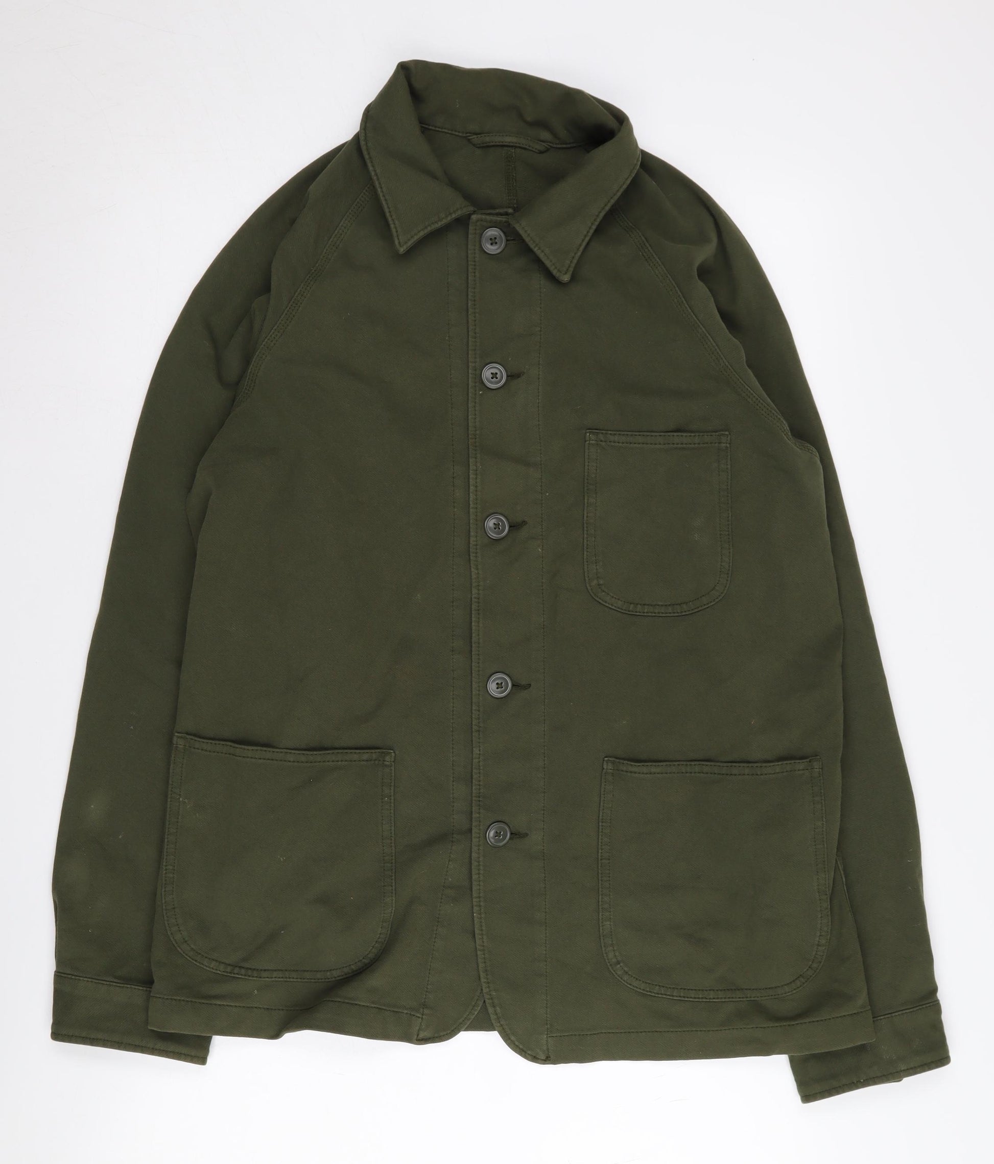 Elevate your wardrobe with this stylish green mid-length jacket, crafted from a high-quality blend of 96% cotton and 4% elastane. Designed for comfort and durability, this jacket is perfect for the modern man seeking both function and form. The jacket features a classic point collar, adding a touch of sophistication to its casual design. With a button closure and three convenient pockets, this jacket offers both practicality and style, making it a versatile addition to any outfit.Ideal for various occasions, whether you're dressing up for a casual outing or seeking an additional layer during cooler days. The jacket's simplicity and elegance make it an essential piece that pairs seamlessly with jeans, chinos, or tailored trousers.Crafted in Bangladesh, this jacket shows excellent craftsmanship and attention to detail. Although it presents in excellent condition, there are no visible sales tags, ensuring you're getting a product that's been cared for and ready to wear.A great layering piece for all seasons, this jacket offers timeless appeal and functional design, ensuring you stay on-trend without compromising on comfort. Whether worn over a t-shirt for a relaxed look or a shirt for a more polished ensemble, this jacket will surely become a favourite in your collection.Don't miss the opportunity to add this versatile piece to your wardrobe at an accessible price.