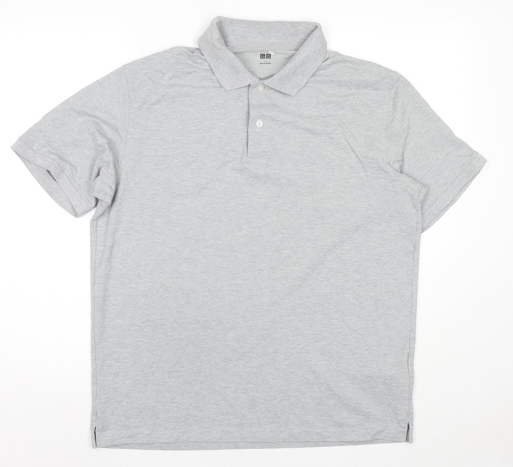 Mens Grey Cotton Polo Size L Collared Pullover