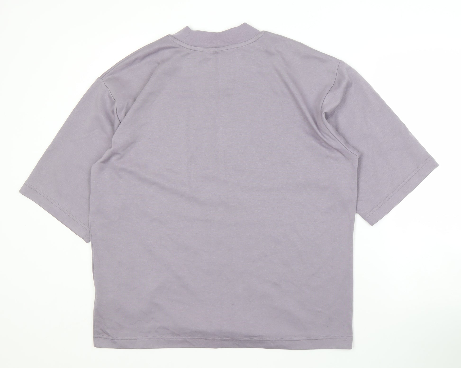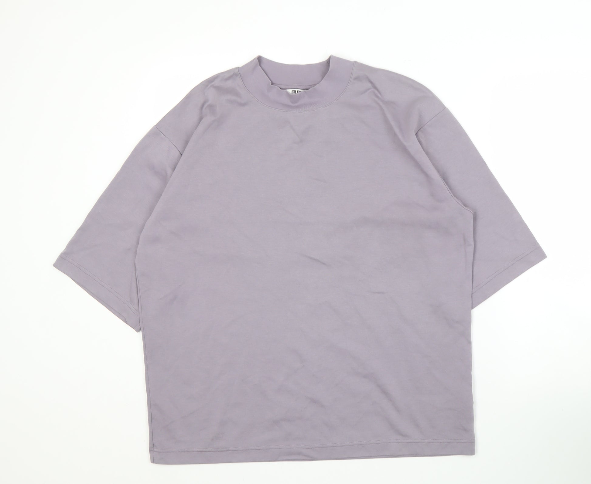 Discover the ultimate blend of comfort and style with the UNIQLO Men's Purple High Neck T-Shirt in Size L. Crafted from a premium blend of materials, including 53% cotton, 43% polyester, and 4% elastane, this T-shirt offers excellent breathability and stretch, making it perfect for all-day wear. The solid purple hue provides a versatile base that can be easily paired with any outfit, from casual jeans to more formal attire. Featuring a high neckline and short sleeves, this T-shirt offers a modern silhouette that’s both fashionable and functional. Perfect for layering or wearing alone, this UNIQLO T-shirt is machine washable, ensuring easy maintenance and longevity. Designed for all seasons, it offers year-round versatility whether you're dressing up for an occasion or keeping it casual. New with tags, this item is in pristine condition with no visible defects, making it an excellent choice for those seeking quality and durability. This T-shirt is a staple for any wardrobe, offering unmatched value and style. Elevate your everyday look with the simplicity and elegance of UNIQLO’s design, perfect for any occasion.