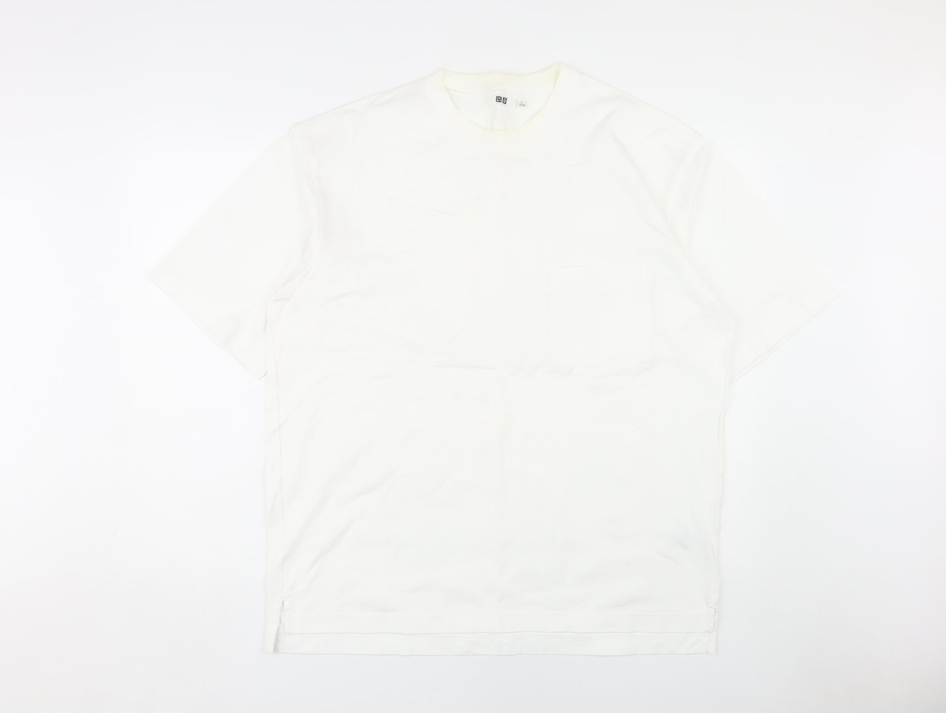 UNIQLO Men's White Cotton T-Shirt, Size L, Crew Neck