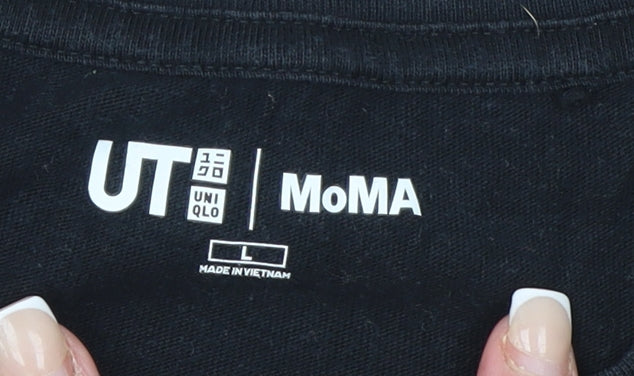 Add a touch of artistic flair to your wardrobe with this Uniqlo MoMA men's graphic T-shirt featuring Salvador Dalí’s iconic 'The Persistence of Memory' artwork. Crafted from 100% soft cotton, this classic crew neck short sleeve T-shirt offers both style and comfort for everyday wear. The lightweight jersey fabric ensures breathability, making it ideal for layering or wearing on warmer days. The black base colour serves as the perfect canvas for the striking surrealist artwork, creating an eye-catching look that art lovers and fashion enthusiasts alike will appreciate. Designed in collaboration with the Museum of Modern Art (MoMA), this piece combines culture and style seamlessly for modern expression. The T-shirt has a regular fit that provides easy movement without feeling too tight or loose, making it a versatile choice for casual outfits. Pair it with jeans, joggers, or shorts for a laid-back yet refined aesthetic. Although lightly worn with a small mark near the lower front, it remains in good condition and perfectly wearable. Whether you’re heading to an art exhibition, out with friends, or relaxing at home, this Dalí-inspired tee brings timeless artistic heritage to your everyday attire. A great option for any art enthusiast or collector of statement graphic tees, this Uniqlo MoMA collaboration encapsulates quality, creativity, and comfort in one versatile garment. Available in size Large (L), it fits true to typical UK men’s sizing. Machine washable and easy to care for, this T-shirt is both practical and stylish, making it a standout addition to your casual wardrobe, perfect for spring, summer, and autumn wear.