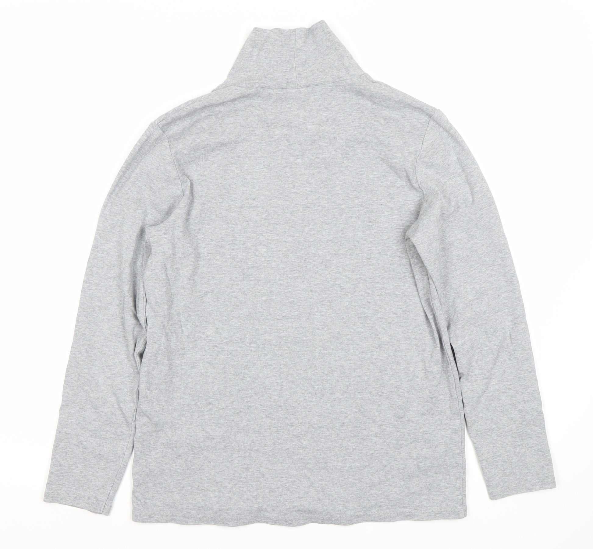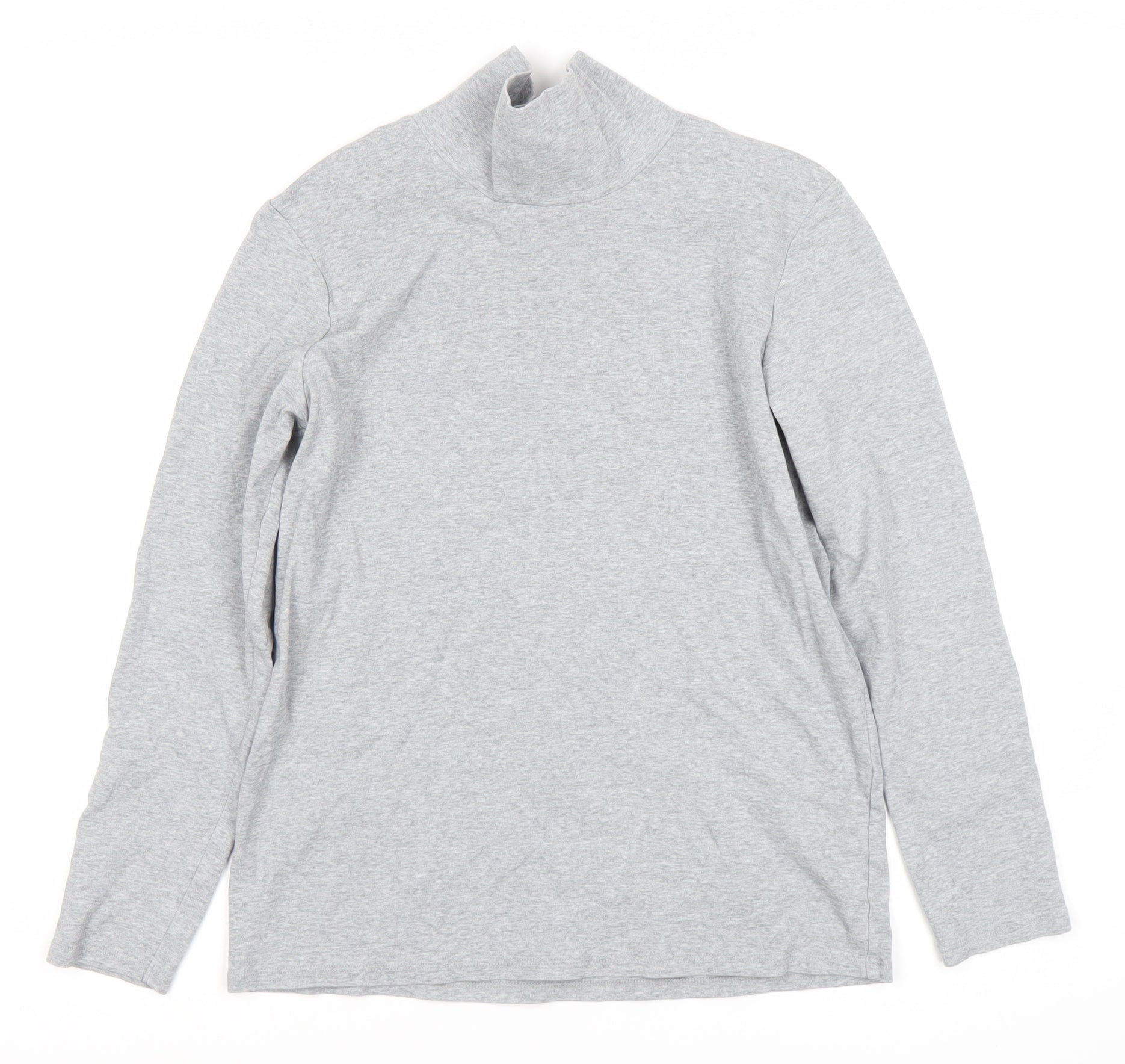 Embrace casual comfort with this versatile grey long-sleeve T-shirt from Uniqlo. Perfect for all seasons, the high neck design adds a modern touch, making it ideal for layering or wearing on its own. Crafted from a soft cotton and polyester blend, this top promises durability and a comfortable fit. Its jersey fabric ensures breathability, while the solid grey colour makes it a versatile addition to any wardrobe. Designed in a regular fit, it offers ease of movement, making it perfect for everyday wear. Whether you're heading out for a casual day or just relaxing at home, this long sleeve T-shirt will keep you comfortable and stylish. Pair it with jeans for a classic look or layer it under a jacket for extra warmth. Easy to care for, it is machine washable, ensuring it stays looking fresh with minimal effort. Ideal for both men and women, this unisex piece fits seamlessly into any wardrobe. Grab yours today and enjoy the soft, high-quality feel of Uniqlo's style.