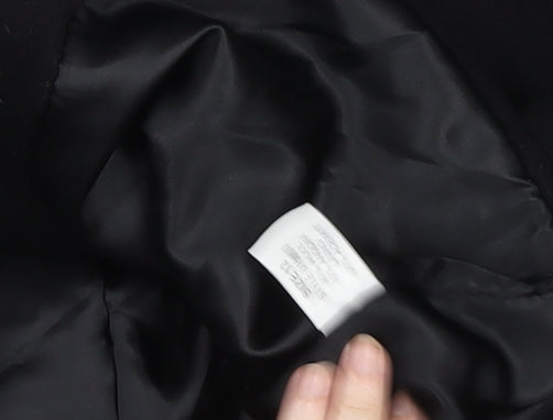 Chic and timeless, this Uniqlo Women’s Black Wool Short Jacket is a beautiful blend of style and sophistication. Crafted from a warm and soft wool blend with 70% wool and 30% nylon, this jacket offers a textured yet smooth finish that’s ideal for cooler days. The structured silhouette flatters the figure while maintaining comfort and versatility, making it a perfect choice for day-to-night wear. Designed in classic black, it features a stunning lace-trimmed collar that adds a feminine and elegant touch, distinguishing it from standard everyday outerwear. The jacket fastens with large, glossy black buttons down the front, achieving a polished and refined look. With long sleeves and a short, cropped length, it pairs effortlessly with trousers, skirts, or dresses, allowing flexibility for casual, business, or evening outfits. The polyester lining ensures a smooth and comfortable fit while providing warmth and durability. This piece evokes understated sophistication while staying true to Uniqlo’s minimalist Japanese design ethos. The jacket is ideal for autumn and winter seasons, easily layered over light knitwear or blouses. Its timeless monochrome palette allows it to complement any colour scheme. Condition is excellent with only light signs of wear, perfectly maintained with no major marks or defects. Perfect for those who appreciate subtle luxury and clean tailoring, this jacket is an essential addition to any refined wardrobe. A versatile wardrobe staple that transitions seamlessly from office settings to evening dinners. Available now at a great value for an authentic Uniqlo outerwear item that embodies quality craftsmanship, comfort, and contemporary style.