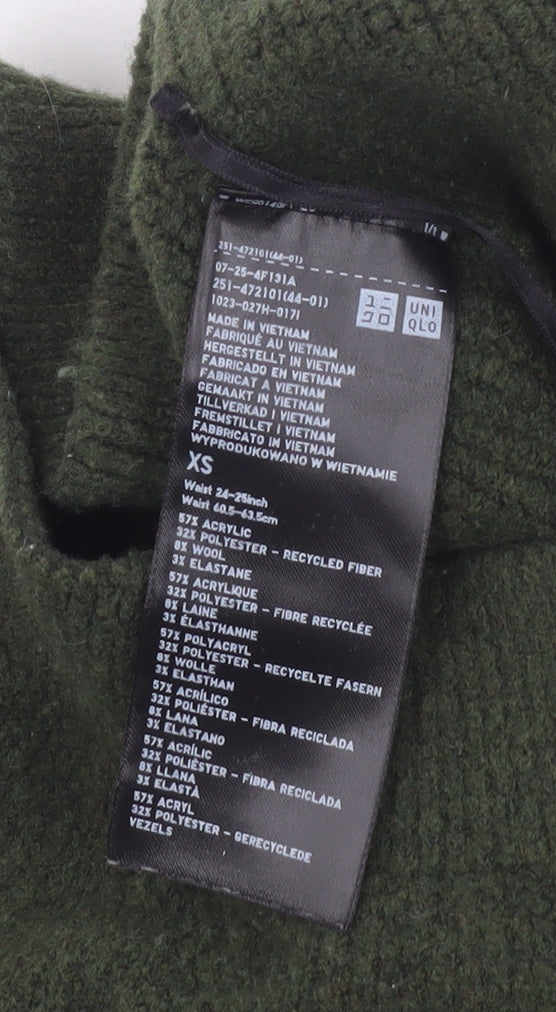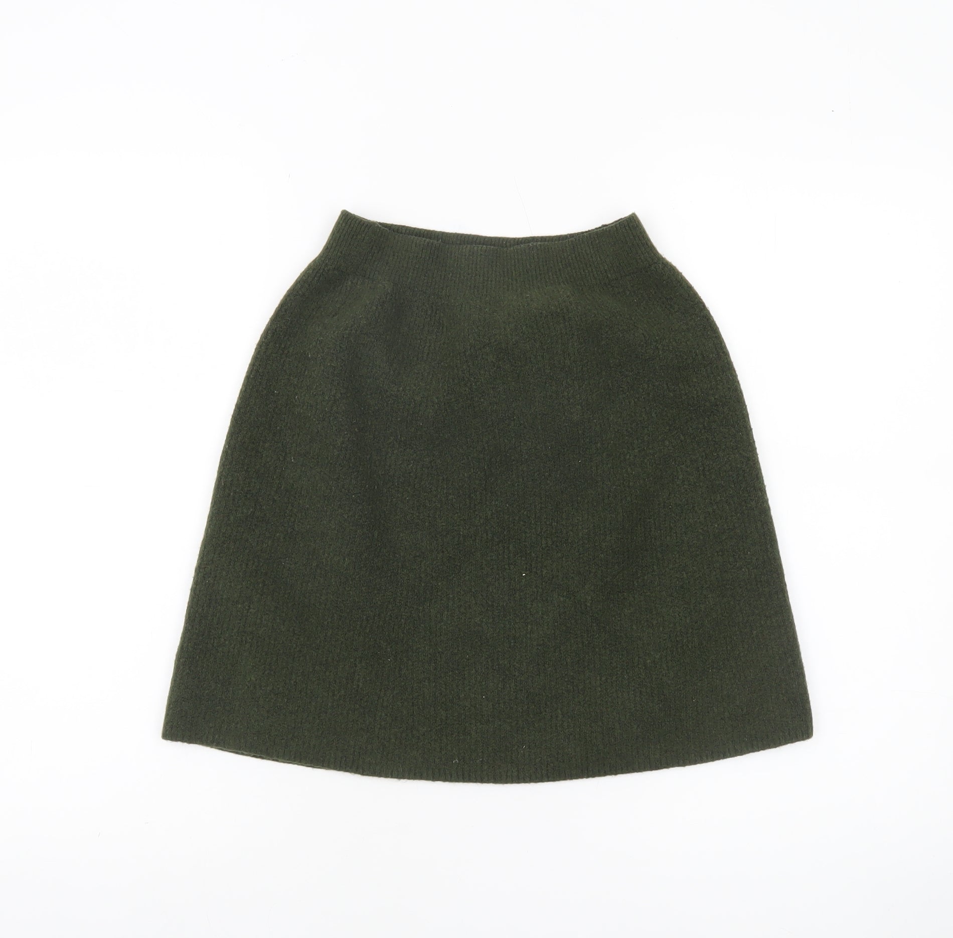 UNIQLO Womens Green A-Line Knit Skirt XS Wool Blend
