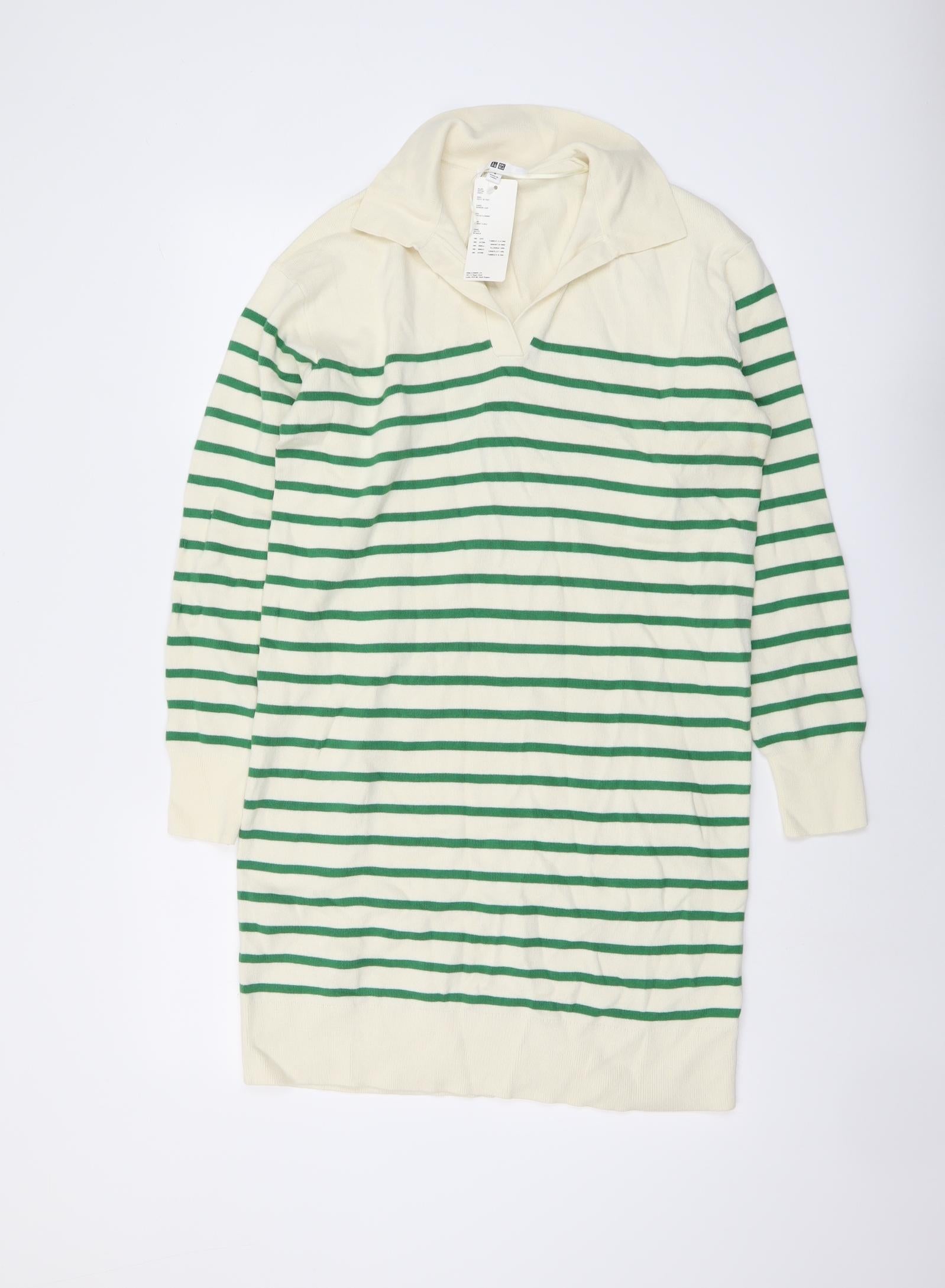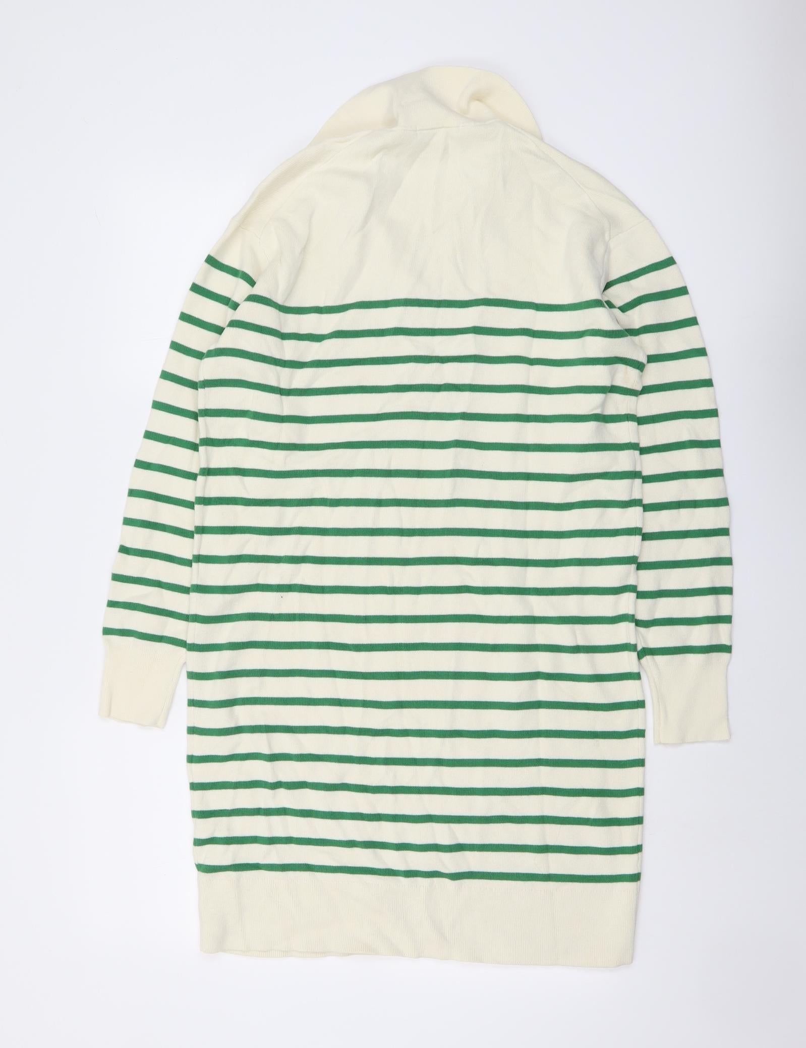 Womens Ivory Striped Cotton Jacket Dress Size S Collared Pullover
