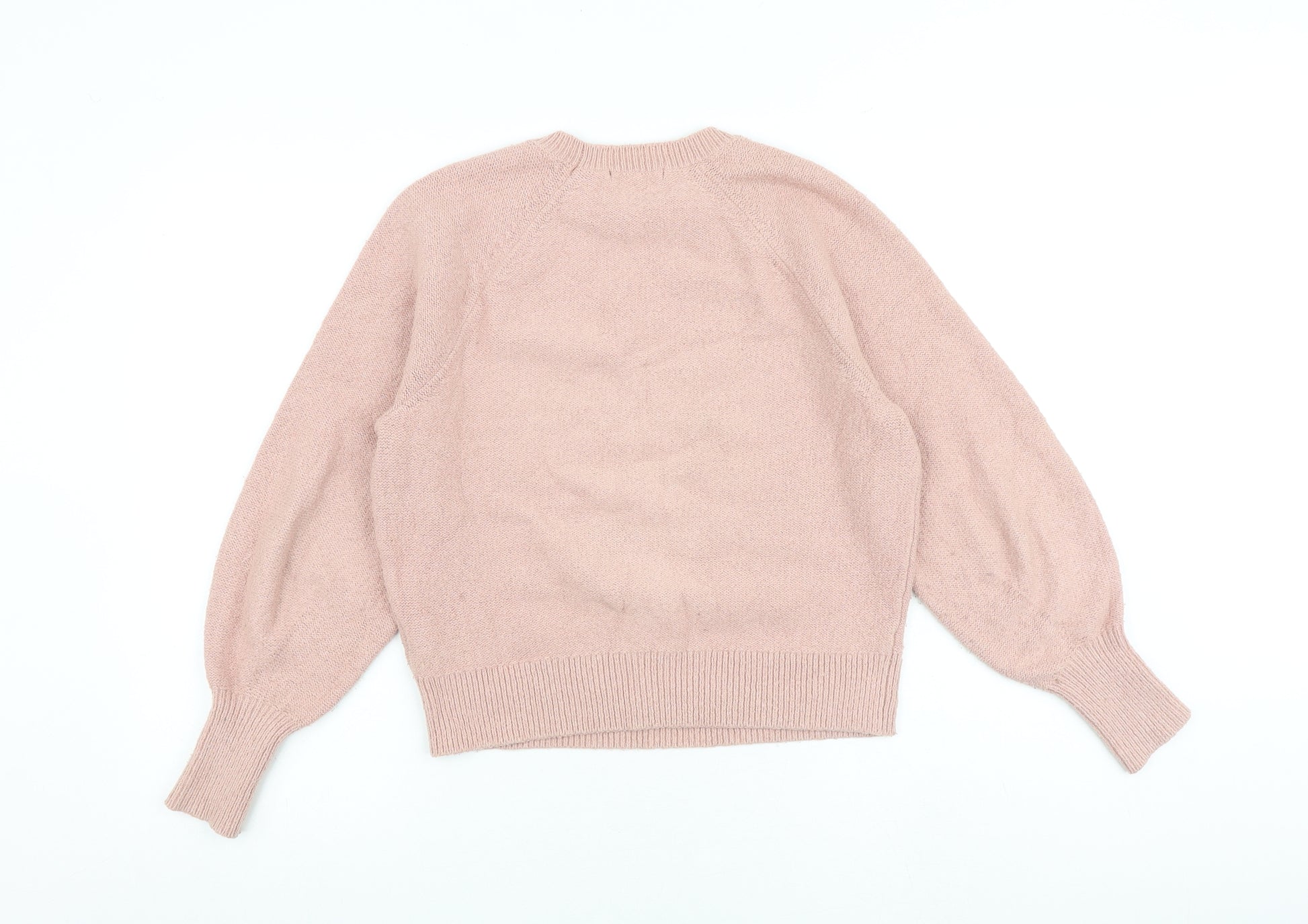 Womens Pink Round Neck Cotton Pullover Jumper Size S