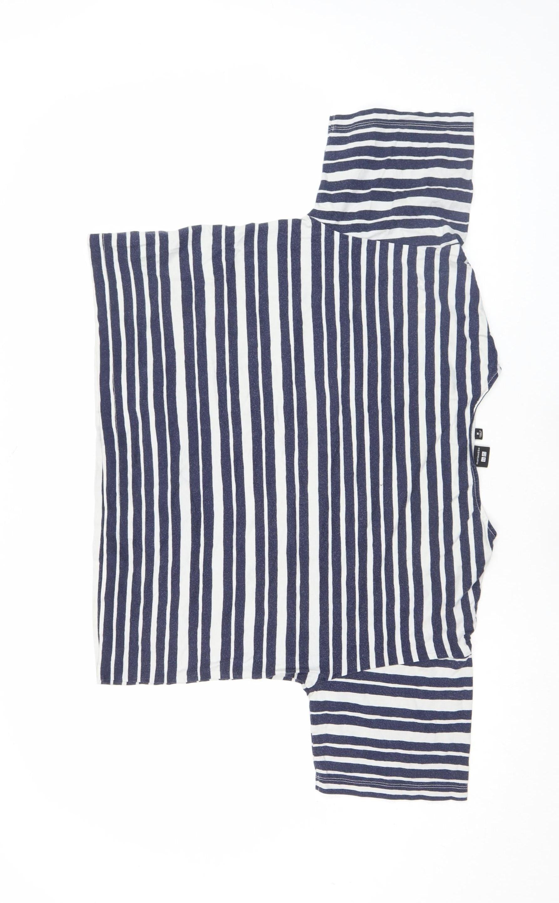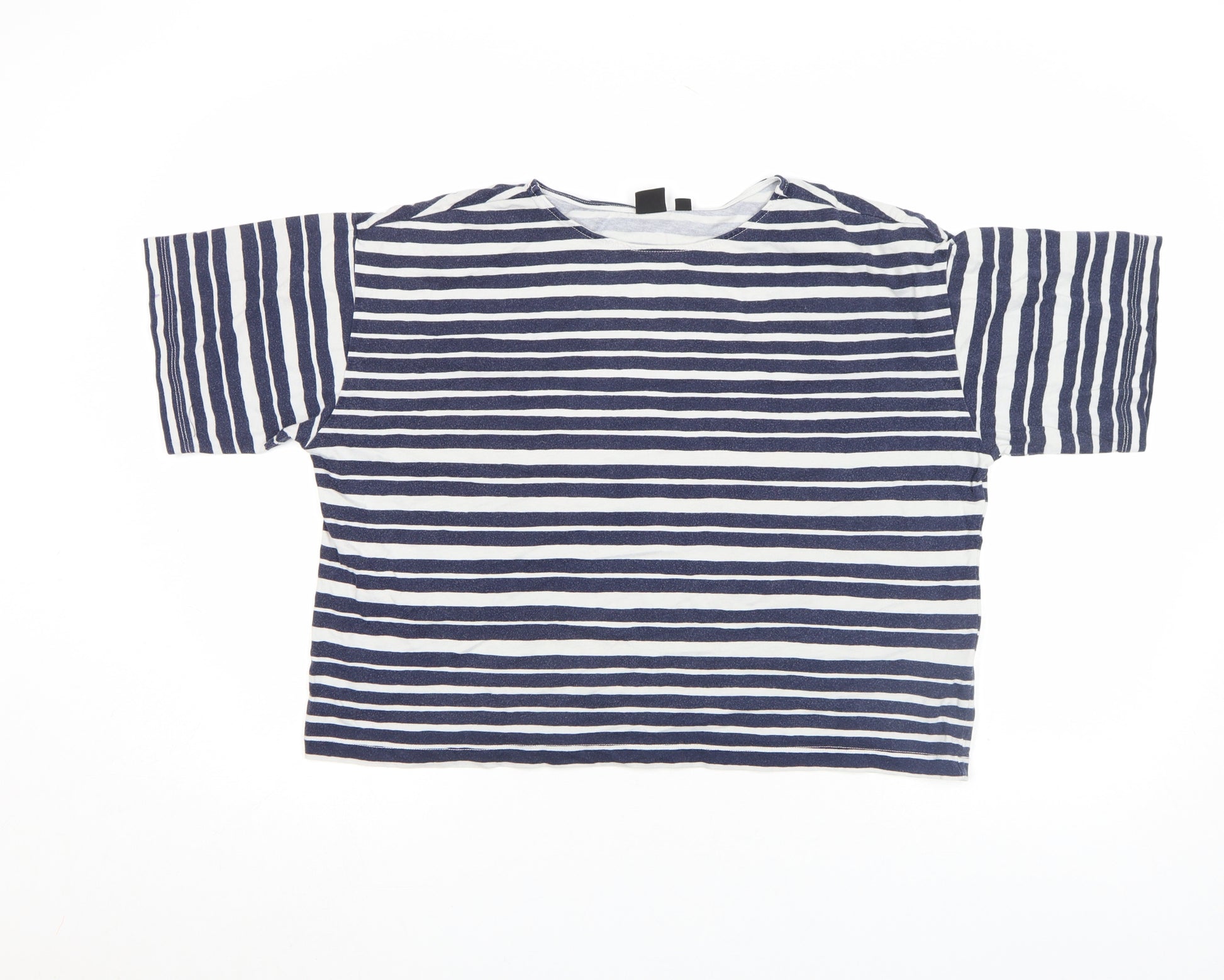 Women’s Blue Striped Cotton Relaxed Fit T-Shirt Size M