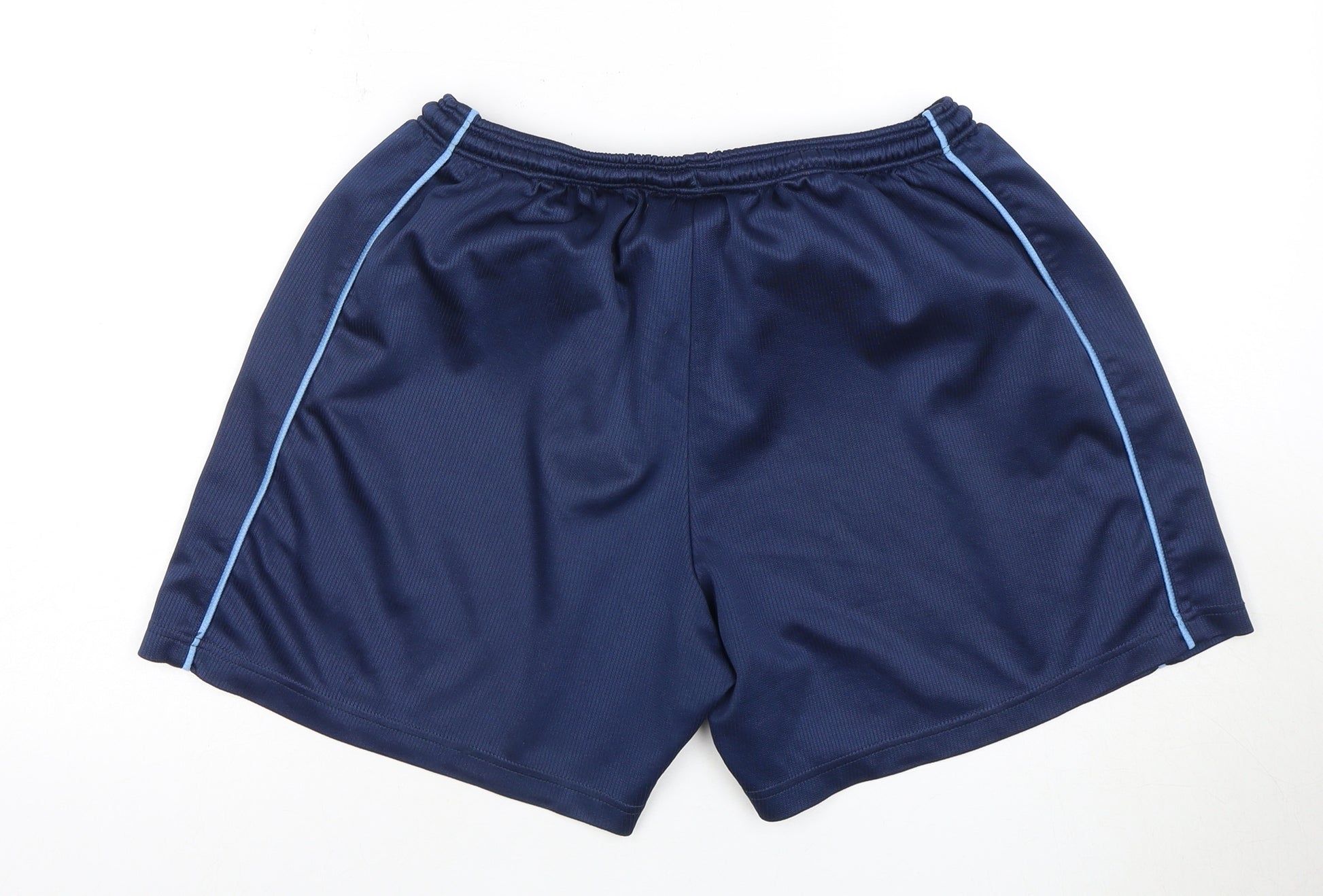 Upgrade your sports wardrobe with these stylish blue activewear shorts, perfect for a range of activities. Made from 100% polyester, they are durable, lightweight, and machine washable, ensuring convenience and longevity. The elastic waist provides comfort and flexibility, making them ideal for both casual outings and intensive workout sessions. Whether you're running, jogging, or just lounging, these versatile shorts will keep you comfortable and on-trend. Grab these in excellent condition at an affordable price, and step up your sportswear game today!