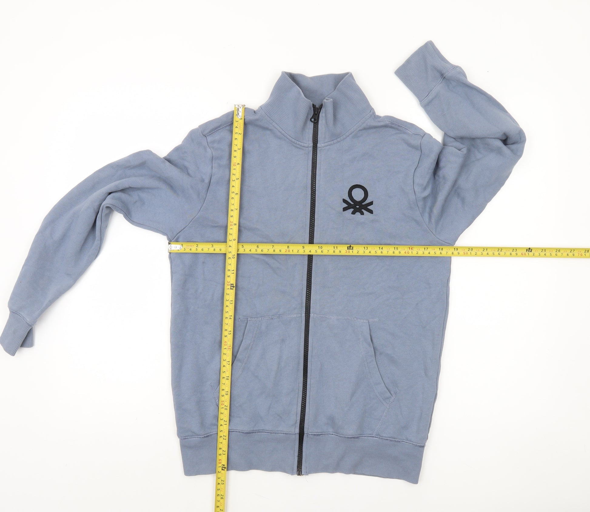 Refresh your child’s wardrobe with this stylish United Colors of Benetton boys’ blue zip track jacket, the perfect blend of comfort and versatility. Crafted from an 80% cotton and 20% polyester mix, the jacket offers a soft and breathable feel, while retaining durability to withstand active days. Its clean design features a full front zip fastening, ribbed cuffs and hem to hold its shape, and handy front pockets for practicality and style. The high neckline adds a sporty edge, keeping the wearer cosy during cooler spring and autumn days.Embellished with the Benetton logo on the chest, this jacket showcases a simple yet iconic look suitable for school, casual outings, or light outdoor activities. The regular fit ensures comfort without restriction, making it ideal for layering over t-shirts or under heavier coats as the seasons change. The smooth blue tone is easy to match with jeans, joggers, or shorts, offering a timeless piece that’s both functional and fashionable. It’s machine washable, providing easy care for busy parents.This Benetton jacket is in excellent pre-owned condition, showing only gentle wear from light use with no visible flaws. Although it does not include the original sales tags, it has been well looked after. Perfect for boys aged 13–14 years, it offers quality craftsmanship and understated style synonymous with the Benetton name.A versatile essential for any young wardrobe, this full zip track jacket strikes the right balance between comfort and casual sophistication—ideal for everyday wear, weekend adventures, and all-season layering.