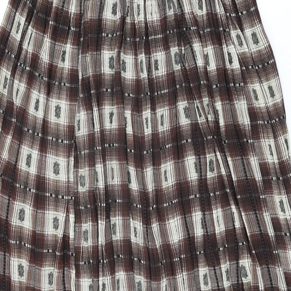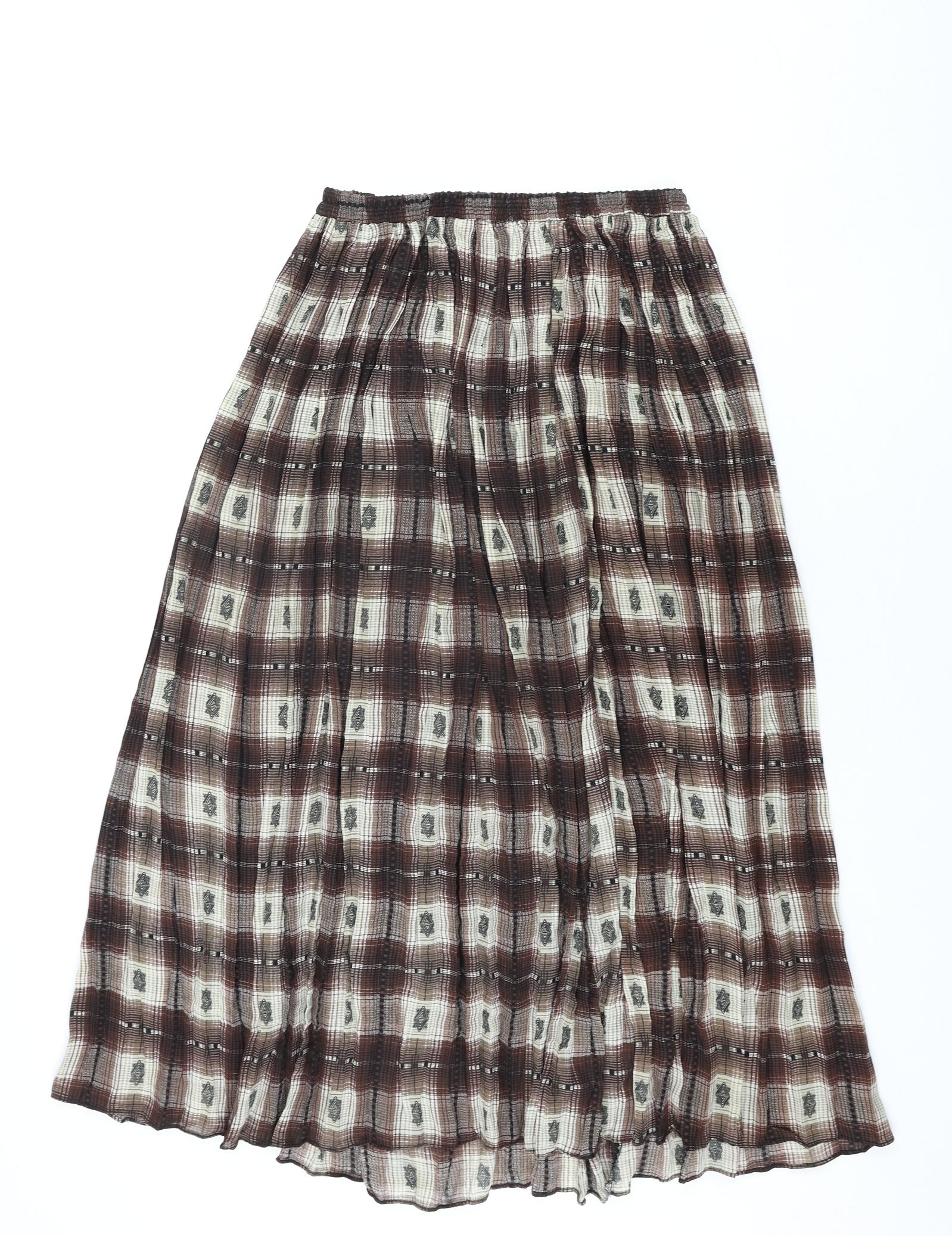 Womens Brown Check Polyester Pleated Skirt Size 18