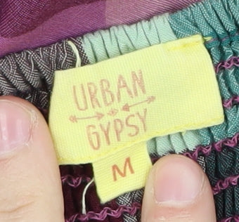 Enhance your wardrobe with this stunning Urban Gypsy A-Line dress, perfect for casual outings and summer adventures. Crafted from high-quality viscose, this multicoloured check dress exudes a bohemian vibe with its vibrant hues. The off-the-shoulder neckline and short sleeves add a touch of femininity and charm, making it ideal for warm-weather wear. The dress falls to a flattering midi length, beautifully covering your knees and allowing ease of movement. The smocked top adds a unique texture and a comfortable fit, flowing effortlessly into an A-line shape that complements various body types. The button closure at the front not only adds a design detail but also makes it easy to wear. Designed for women who appreciate style and comfort, this dress is versatile enough for both day trips and casual evenings out. With its theme rooted in colour and bohemian style, this dress is a must-have for the spring and summer seasons. Minor wear and loose threads have been noted but rest assured, it retains its elegance and charm. This dress is emblematic of Urban Gypsy's commitment to quality and eye-catching design. Don't miss the chance to add this versatile piece to your collection. Perfect for anyone looking to add a splash of colour and a touch of bohemian flair to their style.