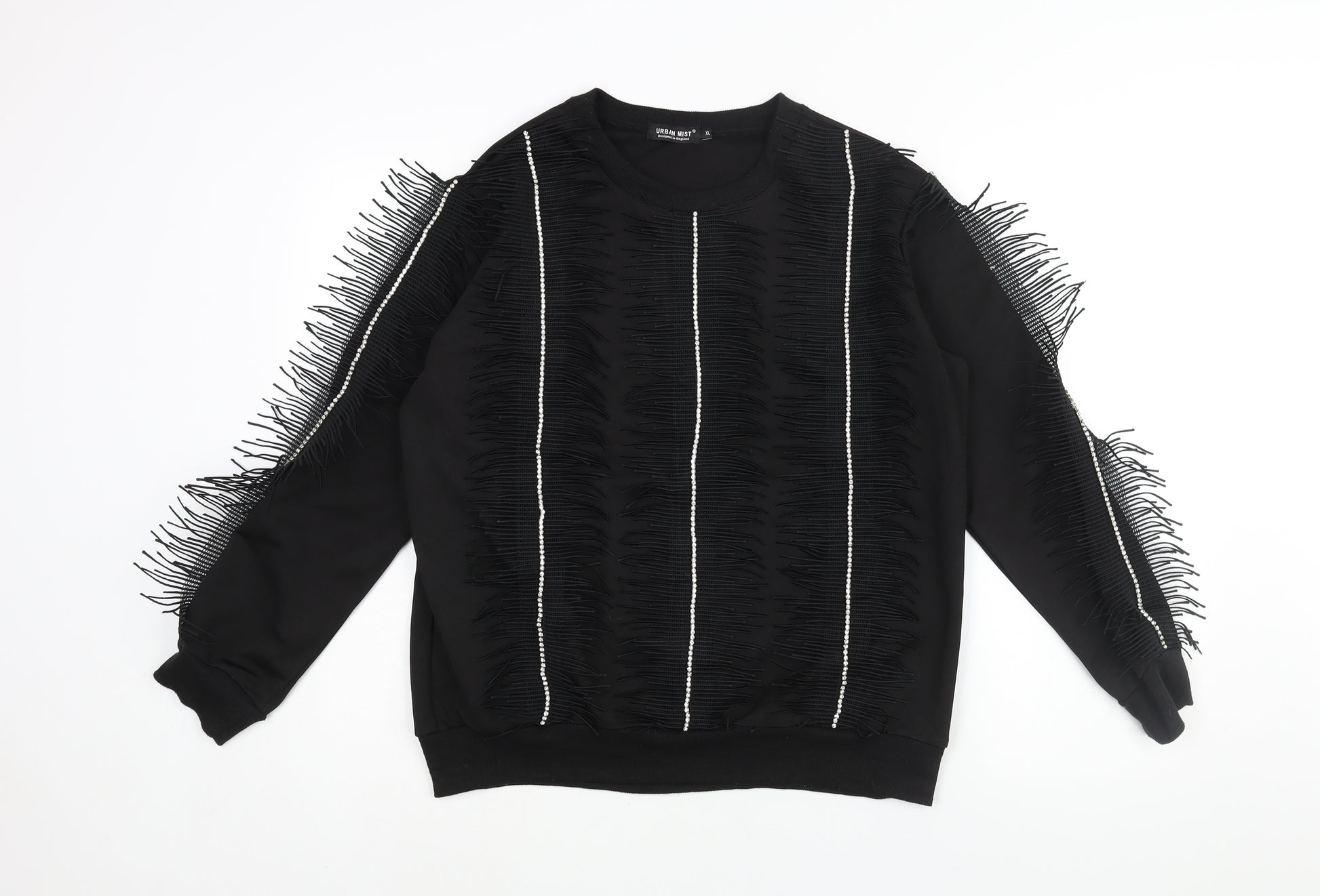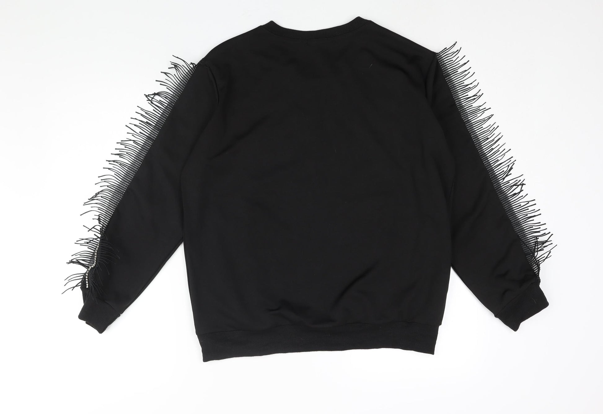 Womens Black Polyester Pullover Sweatshirt Size XL Pullover - Tassle Rhinestone Detail