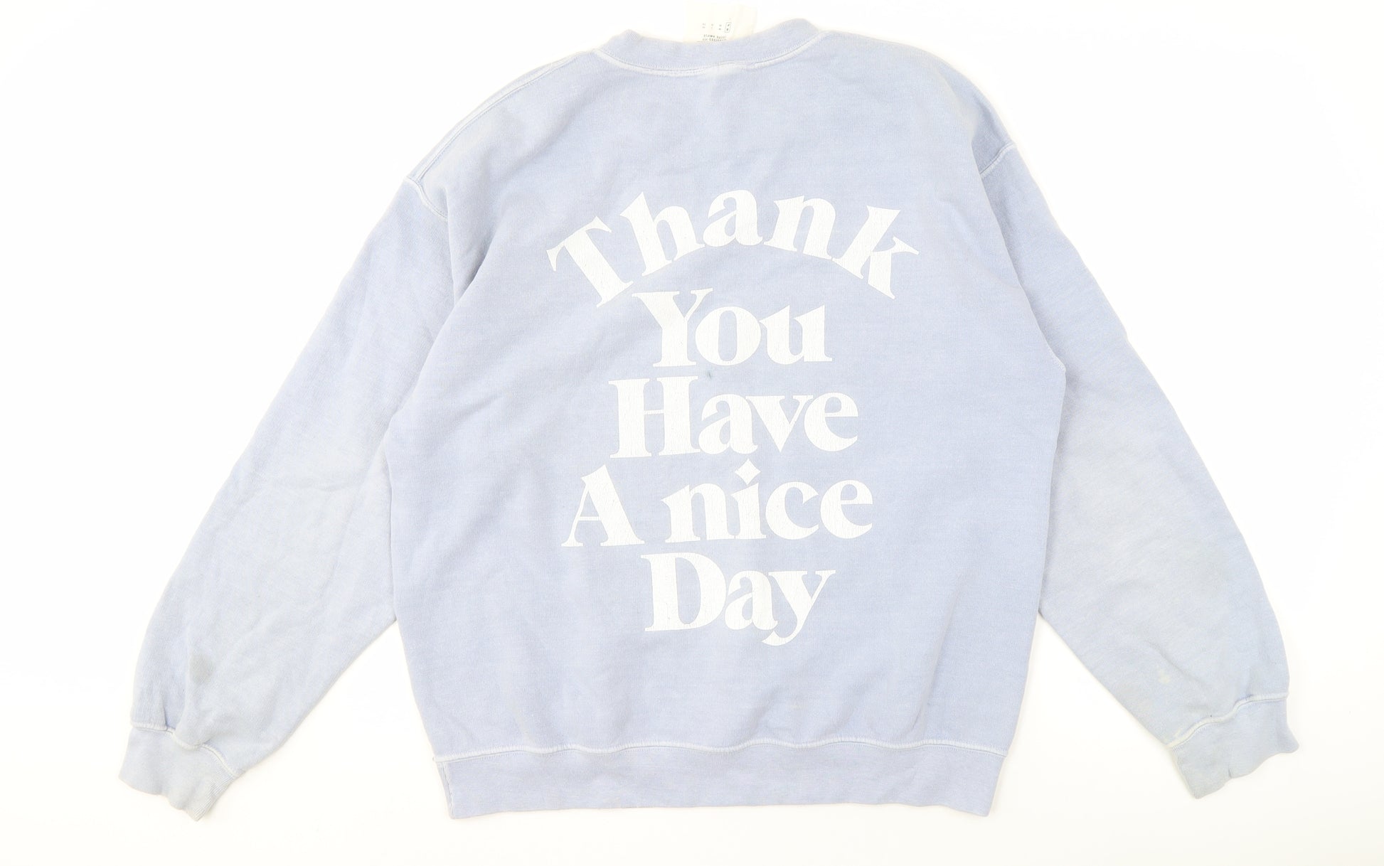 Step out in style and comfort with this Urban Outfitters oversized sweatshirt. Crafted from 100% cotton, this blue pullover offers a relaxed fit, making it perfect for casual wear throughout the year. The crew neck design and long sleeves enhance its laid-back appeal, whilst the graphic logo accent adds a touch of flair to your ensemble. Ideal for both men and women, this sweatshirt caters to the Unisex Adults department, allowing everyone to enjoy its trendy and versatile look. The fleece fabric ensures warmth, making it a great choice for all seasons. Despite being pre-loved, it maintains an excellent condition with a slightly worn appearance, offering both style and durability at an affordable price. Whether you're heading out for a casual day or lounging at home, this sweatshirt complements various occasions. Machine washable for easy care, this piece boasts practicality without sacrificing style. Embrace the comfort and trendiness that Urban Outfitters is known for, and make this sweatshirt a staple in your wardrobe.