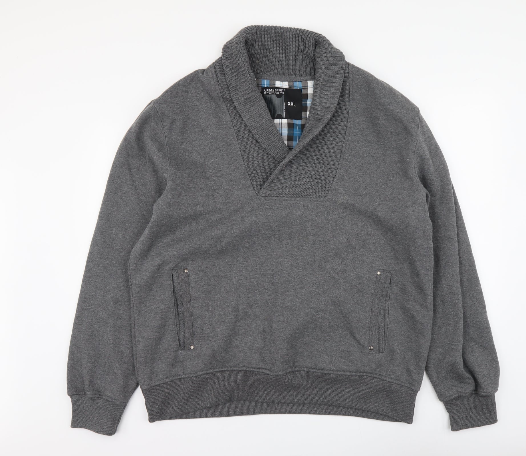 Mens Grey Cotton Pullover Sweatshirt Size 2XL