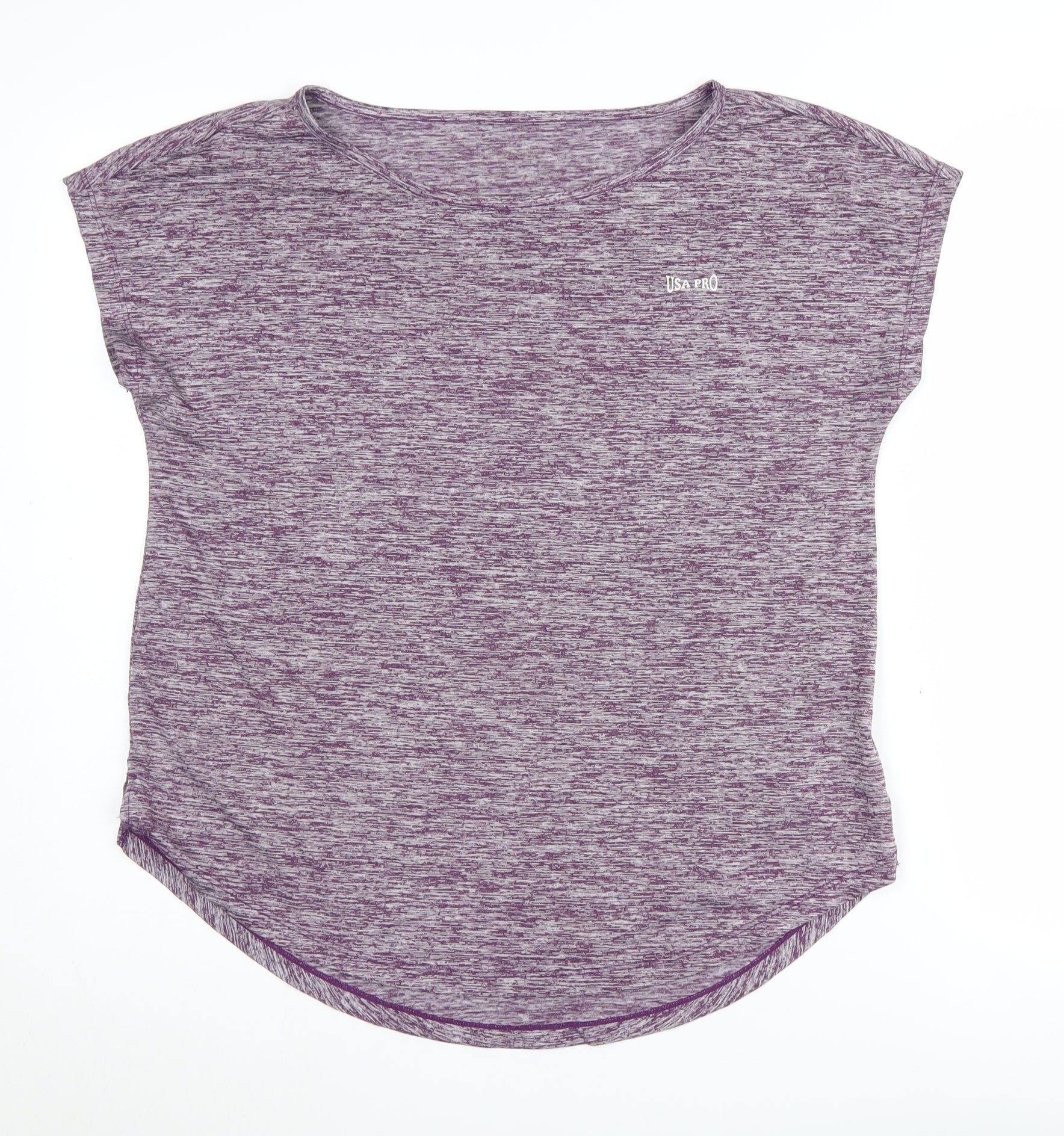Elevate your workout wardrobe with this stylish USA Pro Women's Gym Top in a striking purple hue. Perfect for gym enthusiasts and activewear lovers, this top is designed with both style and comfort in mind. Featuring a solid pattern and a crew neck for a classic look, this top is ideal for any athletic activity. Its sleeveless, cap-sleeve design ensures ease of movement, making it perfect for intense workout sessions. Crafted from a breathable and lightweight jersey fabric, this top is made from a blend of nylon and polyester, ensuring durability and a comfortable fit. The regular fit and size 10 designation cater to a wide range of body types, providing the perfect balance of freedom and support. Machine washable for easy care, this top is a practical choice for active women. The medium fabric wash and sports theme add to its versatility, making it a must-have for any fitness journey. Whether you're sweating it out at the gym or heading for a weekend run, this top will keep you feeling cool and confident. Don't miss the chance to enhance your activewear collection with this high-quality USA Pro Gym Top, designed for anyone who takes their fitness seriously.