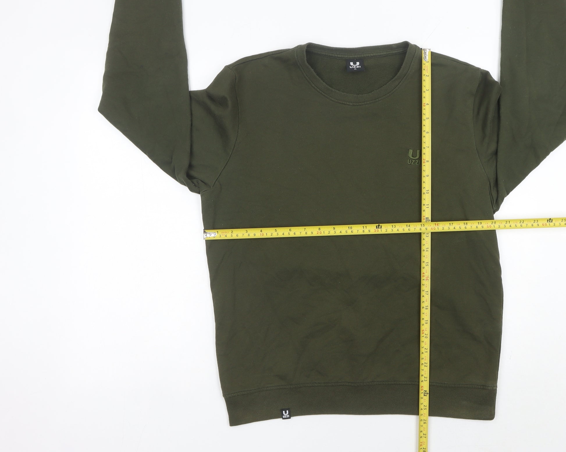 This Uzzi men’s crew neck sweatshirt in a smart green shade is the perfect everyday essential for any wardrobe. Crafted from a comfortable jersey blend of 80% cotton and 20% polyester, it offers the ideal balance of softness, breathability, and durability. Designed with a regular fit, this pullover sweatshirt is versatile, making it suitable for casual wear, layering in colder months, or simply lounging in comfort. The lightweight yet warm construction ensures it can be worn throughout autumn, spring, and winter. The sweatshirt features long sleeves with ribbed cuffs and hem for a clean finish, while the crew neckline provides a timeless and classic silhouette. Its minimalist design is subtly enhanced by the Uzzi embroidered logo accent on the chest, showcasing understated branding without being overwhelming. The green colour makes it incredibly easy to style, pairing effortlessly with jeans, joggers, or chinos for a casual yet refined look. Practical and easy to care for, this machine-washable sweatshirt requires minimal effort to keep looking fresh, making it an ideal piece for regular rotation. The design ensures both comfort and style, while still being functional for a variety of everyday settings. This sweatshirt is in very good used condition, with no visible damage, stains, or pulls, showing light creasing consistent with gentle wear. Offering excellent value, this Uzzi piece makes a fantastic addition to any collection for those who appreciate quality and easy styling at an affordable price point. Whether you’re heading out for a casual day with friends, layering up for a cool evening, or looking for a reliable go-to wardrobe basic, this Uzzi sweatshirt covers all bases with effortless appeal and comfort.