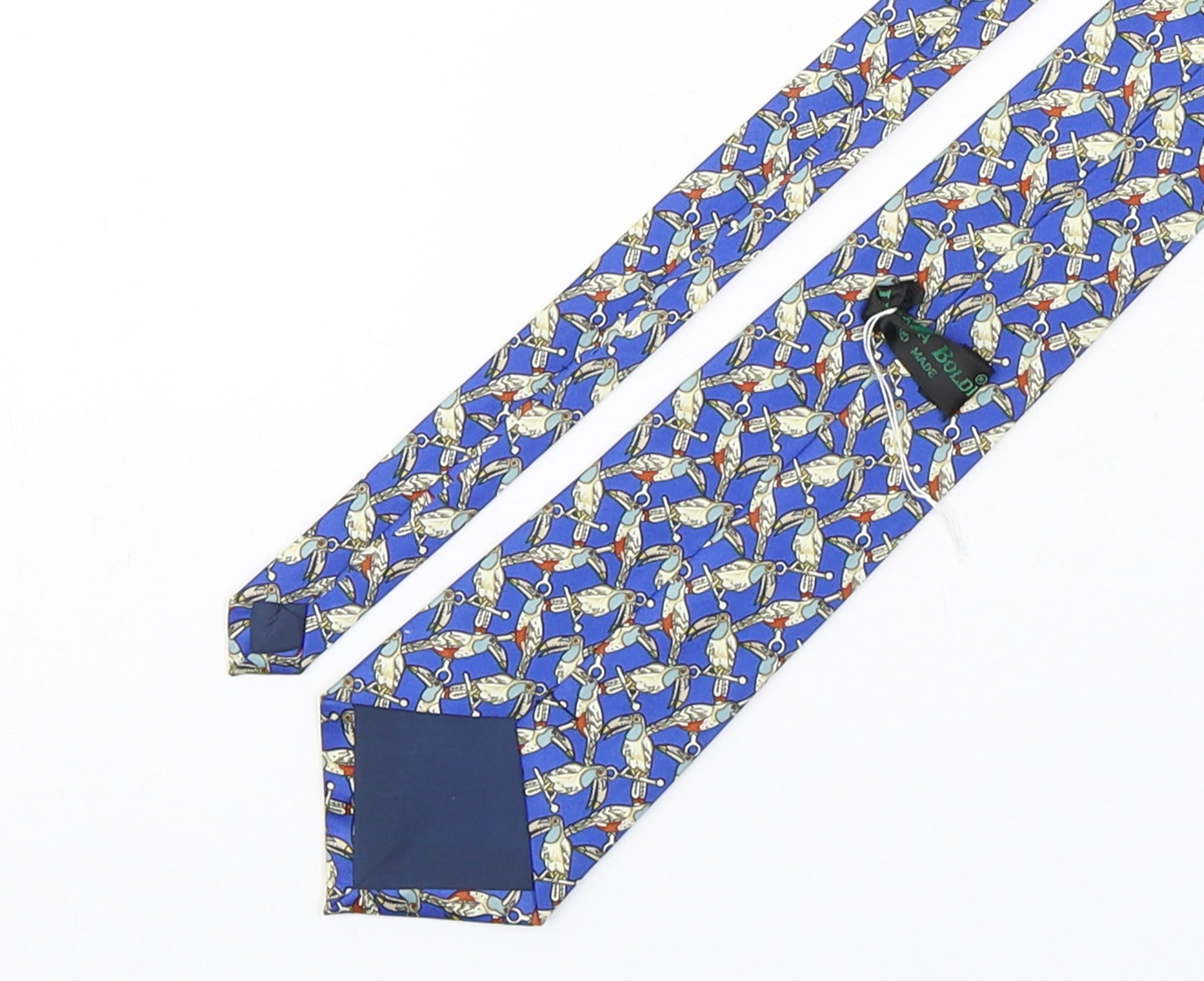 Mens Multicoloured Geometric Silk Pointed Tie One Size - bird print