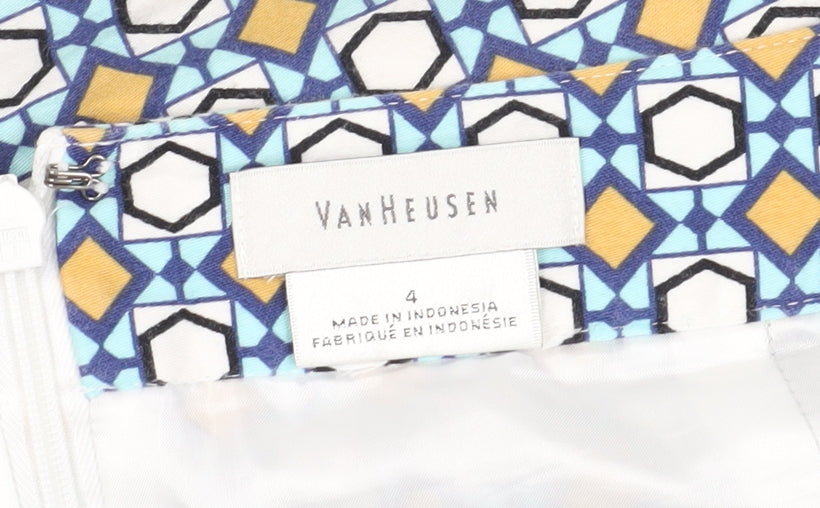 Upgrade your wardrobe with this chic Van Heusen Women's Pencil Skirt, perfect for both business and casual settings. Designed with a striking geometric pattern, this knee-length skirt offers a sleek and professional look while allowing you to express your unique style. The multicoloured fabric complements a variety of tops, making it a versatile addition to your closet. Crafted with attention to detail, the skirt is lined for added comfort and features a convenient zip closure, ensuring a tailored fit. Ideal for all seasons, this skirt suits a variety of occasions, from workwear to casual outings, blending seamlessly with your existing wardrobe. With its mid-rise design, it provides a flattering silhouette that enhances your natural shape. Though pre-loved, this piece is in excellent condition with no visible defects, ensuring you look polished and stylish at all times. Do not miss out on this must-have addition that combines elegance with everyday practicality. Whether paired with a blouse for a meeting or a casual top for a lunch date, this Van Heusen pencil skirt is sure to turn heads and boost your confidence.