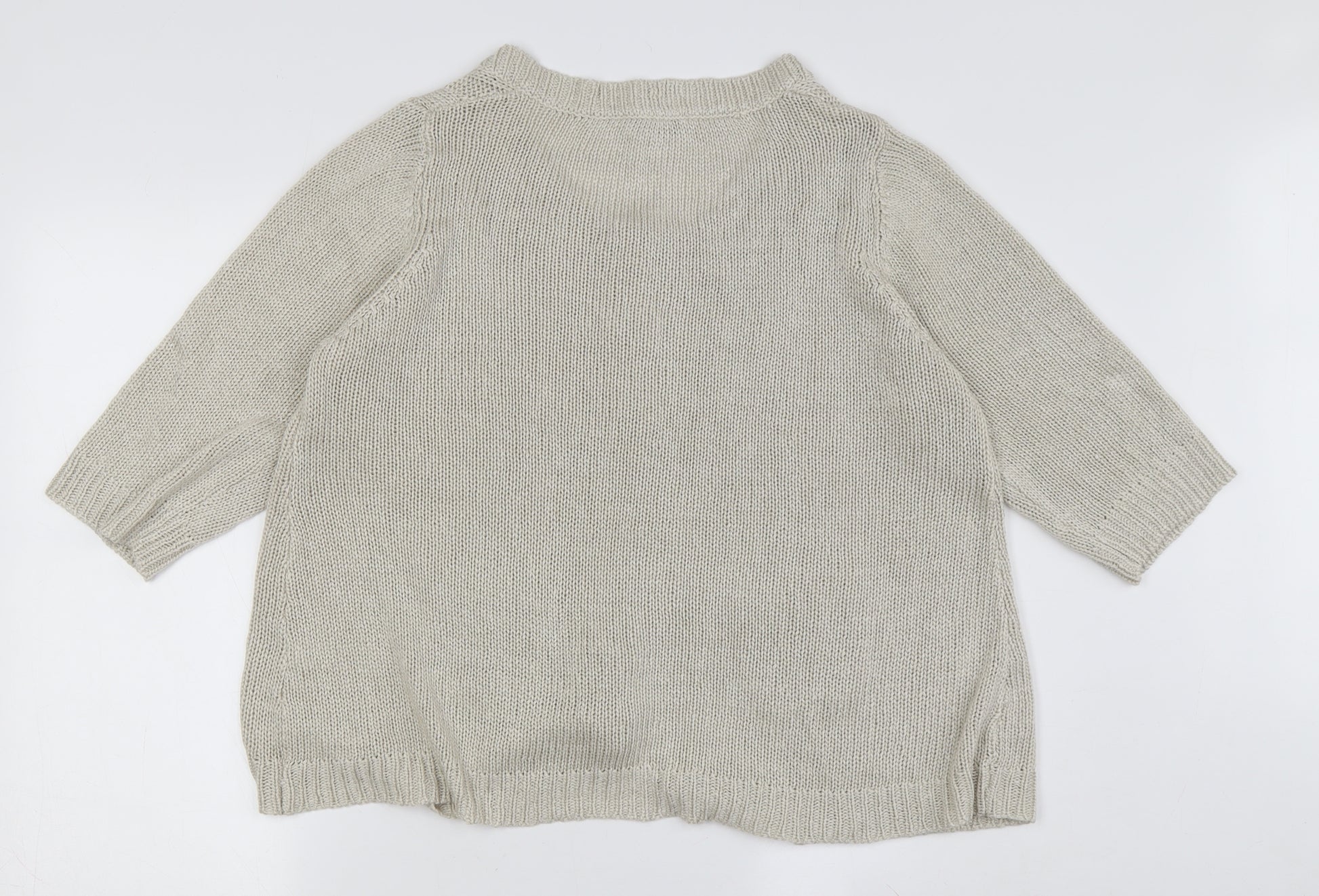 Wrap yourself in comfort and style with this Vanilla Sands women's cardigan, an essential for your autumn and winter wardrobe. Featuring a cosy cable-knit design, this cardigan radiates warmth and elegance. Made of 100% acrylic, it offers a soft touch against your skin and is easy to care for, being fully machine washable. The neutral beige hue complements any outfit, making it a versatile addition to your fashion collection. Complete with a round neck and 3/4 sleeves, this cardigan is perfect for layering over your favourite tops. The front button accents add a touch of classic charm. Designed for women in a size 18, it ensures a regular fit that accommodates various body types. This regular-sized, casual cardigan is ideal for outings, work, or a relaxed day at home. Despite its excellent condition with no visible wear or damage, it’s offered at an attractive price, ensuring great value. Whether for yourself or as a thoughtful gift, this Vanilla Sands cardigan will certainly become a treasured piece in any wardrobe. Experience the blend of style, comfort, and convenience with this must-have garment.