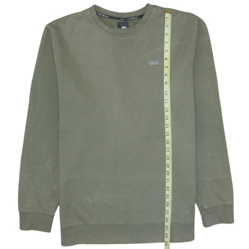 This Vans men's crew neck sweatshirt in green offers a classic, laid-back look perfect for everyday wear. Made from a comfortable cotton and polyester blend, the fleece fabric provides a soft and lightweight feel ideal for layering during cool weather. Designed in a regular fit, this pullover style sweatshirt delivers easy mobility and versatility for both casual outings and skate sessions. The subtle embroidered Vans logo on the chest adds an understated yet iconic touch, reflecting the brand’s renowned skate culture heritage. Featuring long sleeves, ribbed cuffs, hem, and neckline, this sweatshirt combines practical comfort with effortless streetwear style. Its simple no-pattern design makes it easy to pair with jeans, chinos, or joggers for a timeless, modern look. Suitable for the autumn, winter, and spring seasons, it’s perfect for keeping warm whether you’re commuting, skating, or relaxing in comfort. Machine washable for easy care, this sweatshirt maintains its quality and shape wash after wash. In excellent pre-owned condition, it shows minimal signs of wear with no visible marks or damages. Ideal for men who appreciate reliable quality and low-maintenance fashion, this Vans sweatshirt fits seamlessly into both weekend and everyday wardrobes. Fresh, neutral, and understated in tone, it’s a versatile addition for those who value both comfort and simplicity. For fans of Vans’ classic skate-inspired apparel, this piece captures the essence of relaxed urban fashion while offering durability and warmth. A great choice for layering through the seasons, this pullover is a wardrobe staple blending comfort, cool design, and long-lasting appeal.