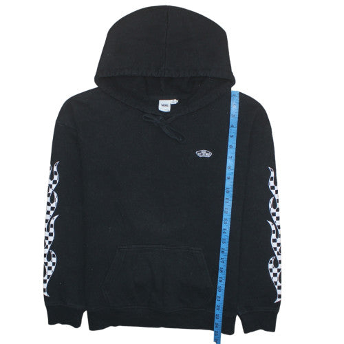 Upgrade your casual look with this stylish Vans women’s hoodie, designed for easy everyday wear while maintaining a modern edge. Crafted from a soft and durable cotton‑polyester blend, this pullover hoodie offers comfort, durability and effortless style. The black colourway provides a versatile base that easily pairs with jeans, joggers or leggings, while the iconic Vans logo embroidery on the chest and striking checker flame print on both sleeves deliver a bold, standout aesthetic that reflects true streetwear fashion. Featuring a classic hood with adjustable drawstrings, a cosy fleece interior and a front kangaroo pocket, this hoodie is both functional and comfortable. The ribbed cuffs and hem ensure a snug fit while maintaining its shape wear after wear. Designed for all‑season versatility, this midweight piece is perfect for layering during cooler months or wearing on its own for a relaxed spring and autumn look. Made with quality materials, the blend of cotton and polyester provides excellent breathability and softness while resisting shrinkage and maintaining that premium Vans appearance. Whether you’re heading out for a casual day with friends, relaxing at home or adding an urban flair to your outfit, this hoodie is an ideal choice for women and teens who appreciate streetwear authenticity and everyday practicality. Pre‑owned in excellent condition, with minimal signs of wear and no visible damage, this Vans hoodie retains its original shape and texture. A great addition to any wardrobe for those who value classic comfort combined with bold styling.
