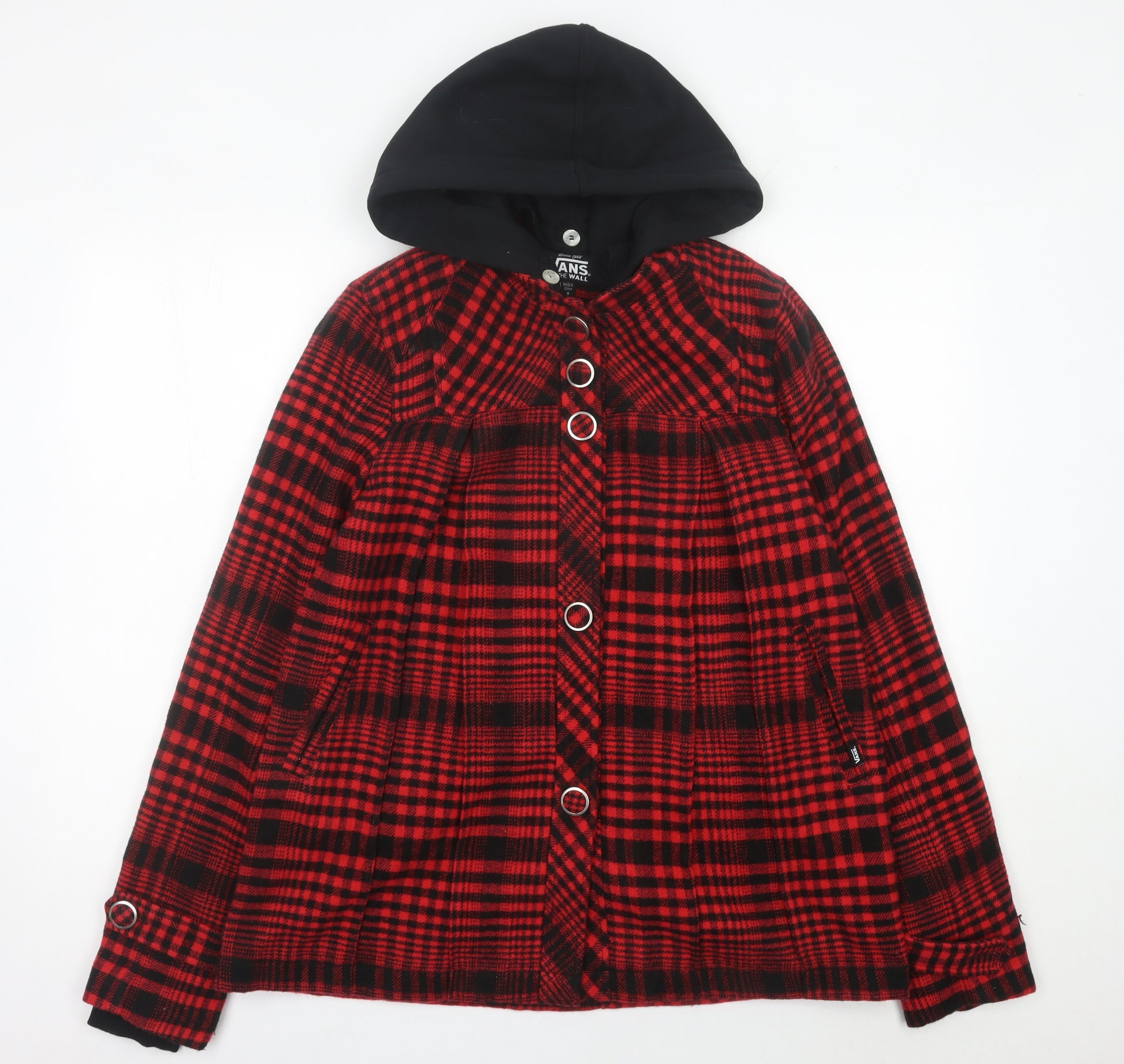 Vans Womens Red Check Hooded Jacket Size M Acrylic Wool