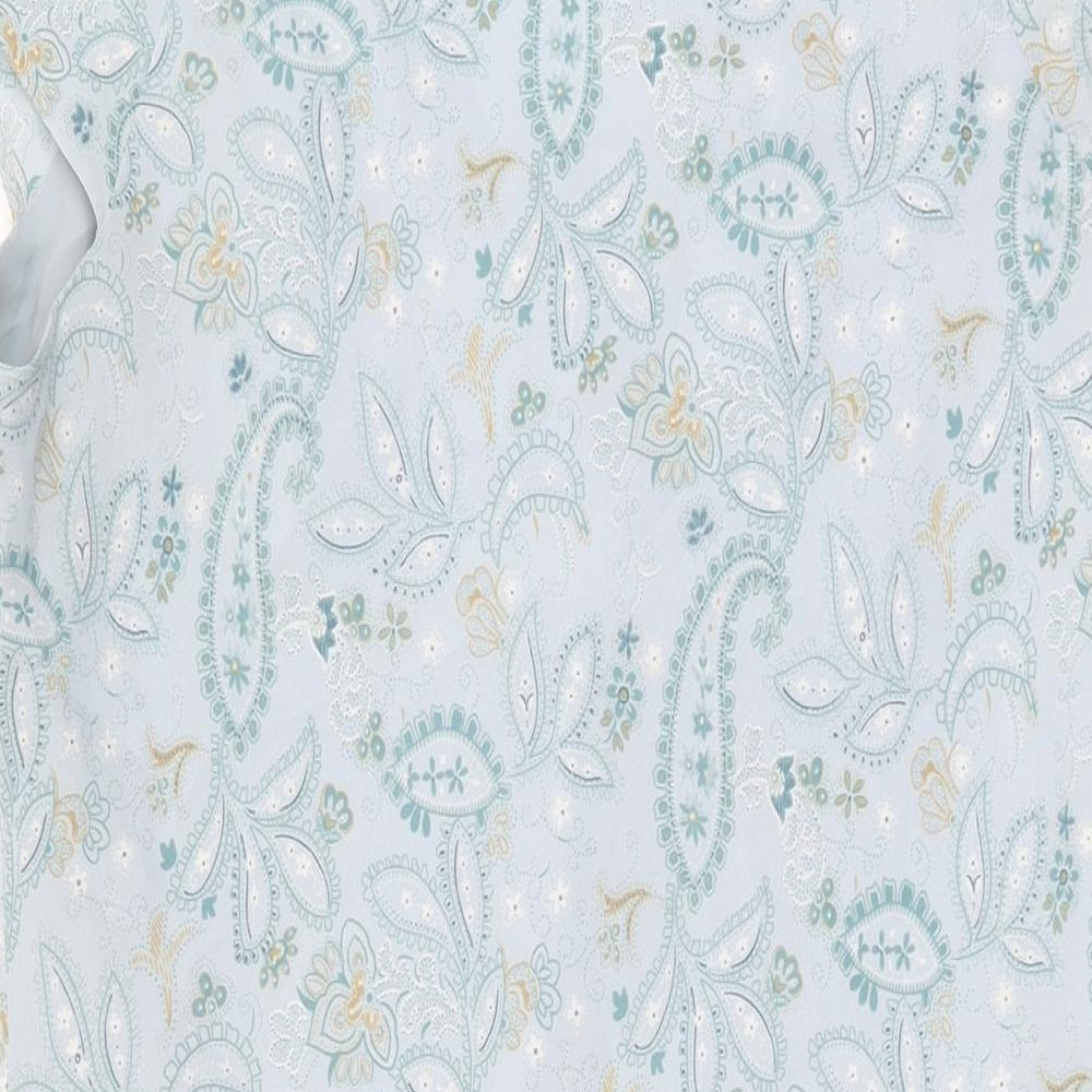Womens Blue Floral Polyester A-Line Size 18 V-Neck Pullover