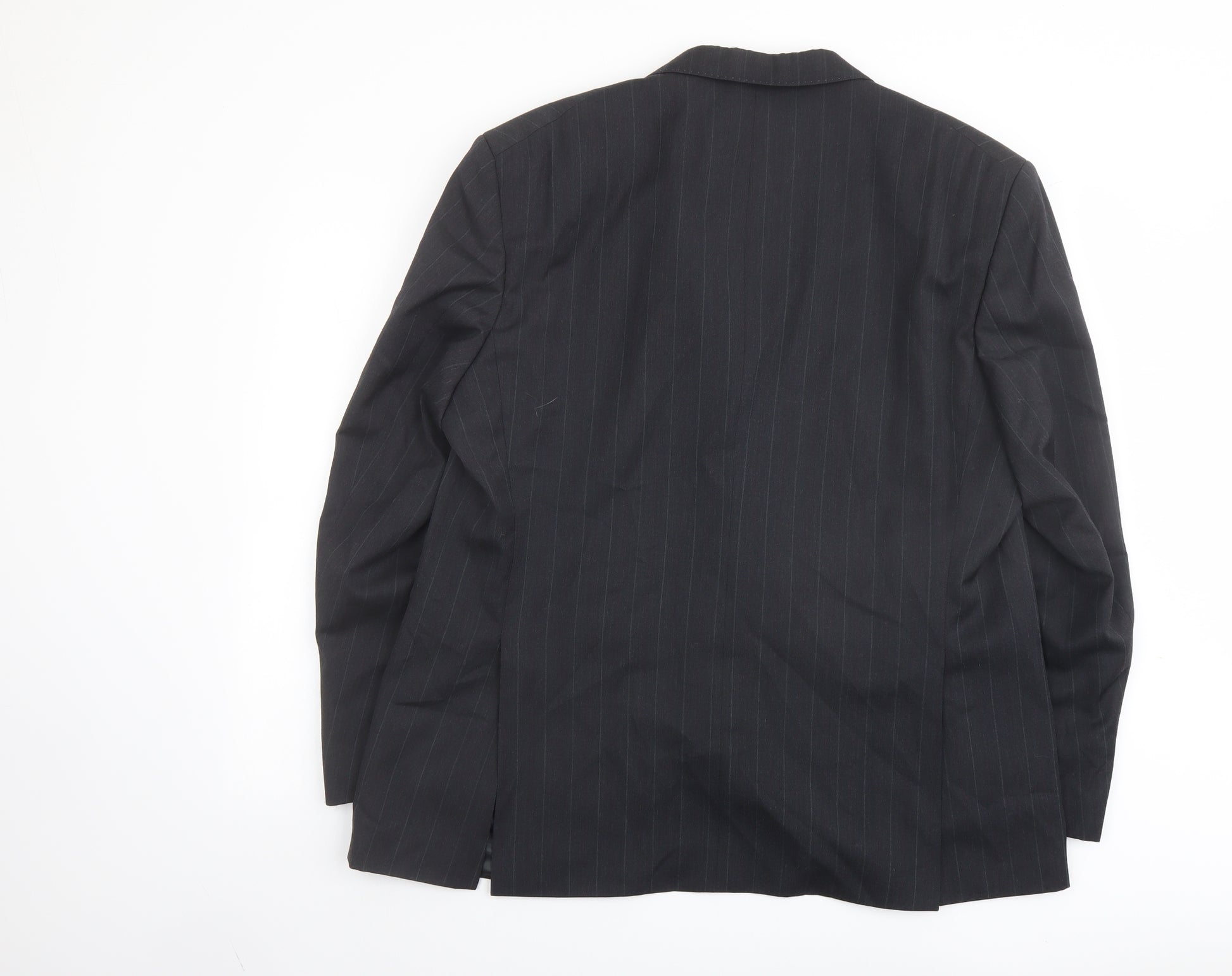 Mens Grey Striped Polyester Jacket Suit Jacket Size 48 Regular