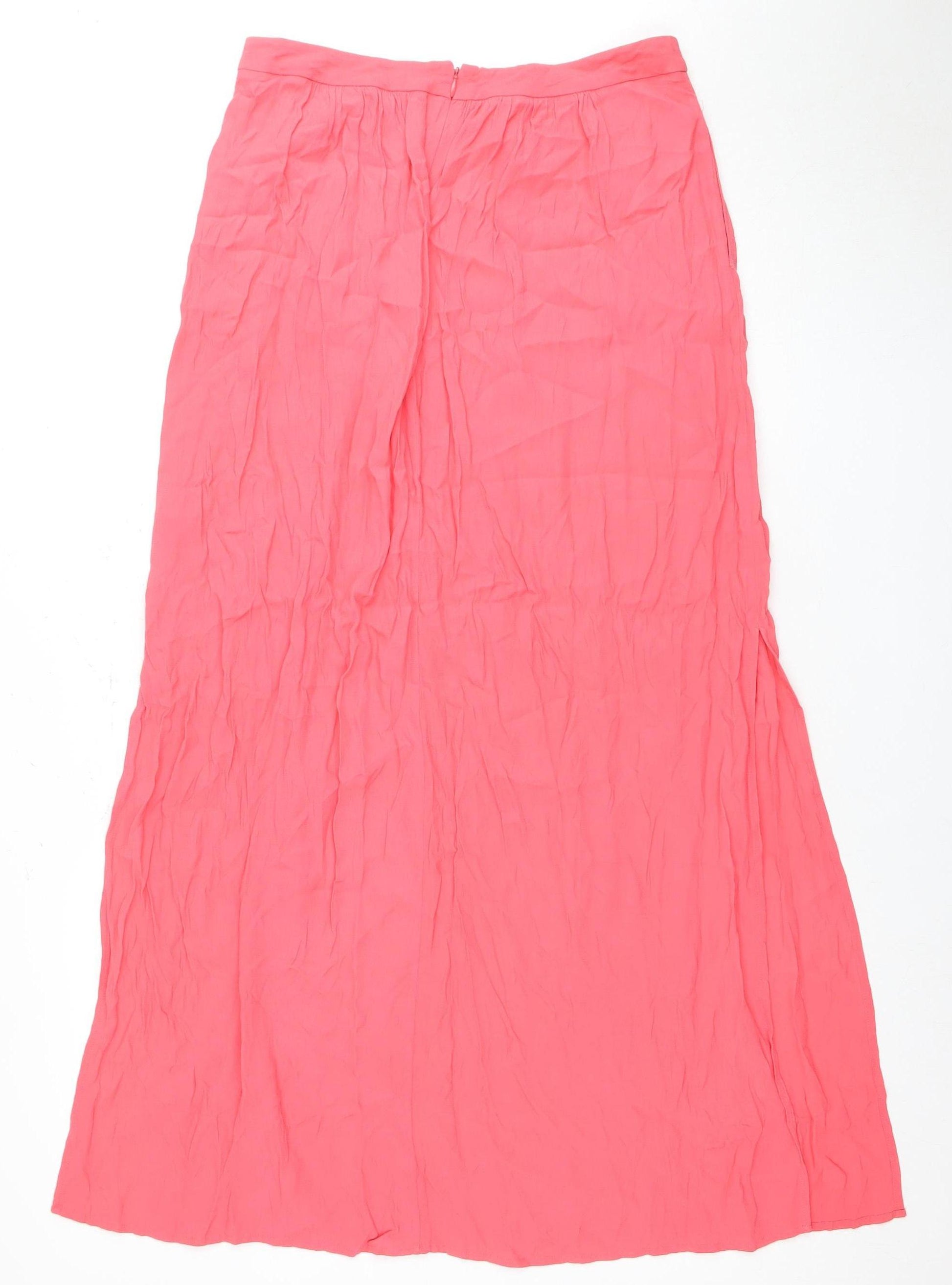 Coast Women's Pink A-Line Midi Skirt Size 10 Satin Finish