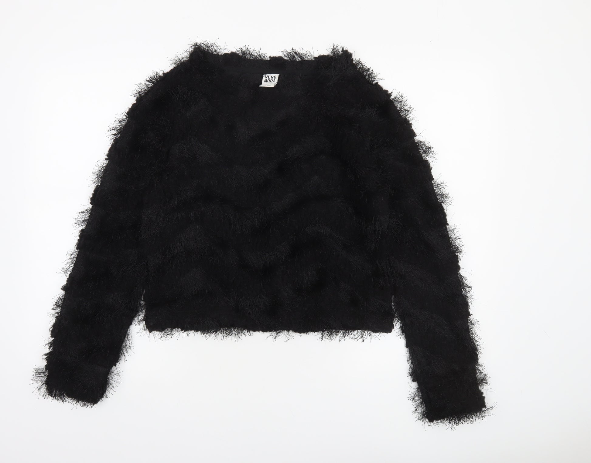 Vero Moda Womens Black XS Furry Pullover Jumper Fluffy Knit Sweater