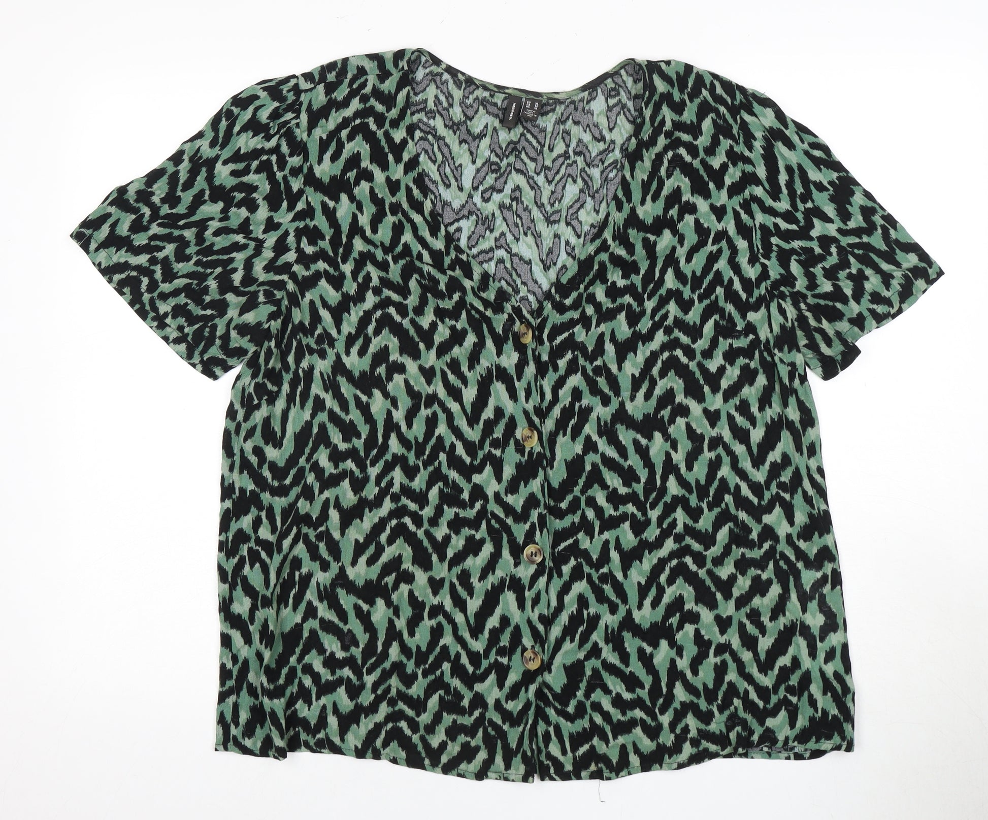 Vero Moda Women's Green Black Animal Print Blouse Size 16