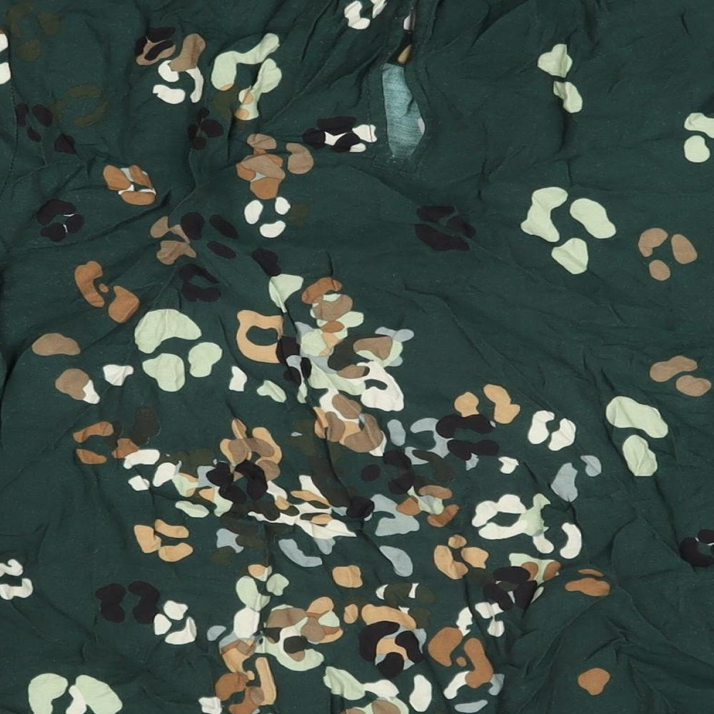 Womens Green Geometric Viscose Basic T-Shirt Size M Round Neck