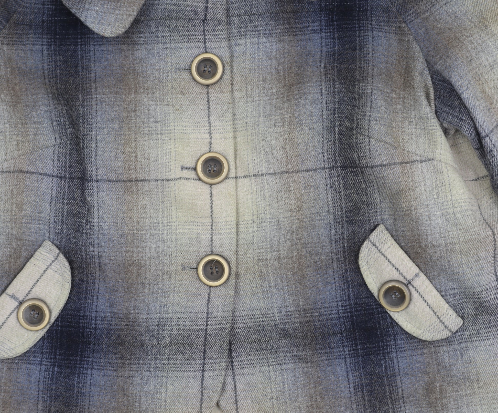 Women’s Multicoloured Wool Blend Plaid Four-Button Blazer Size 12