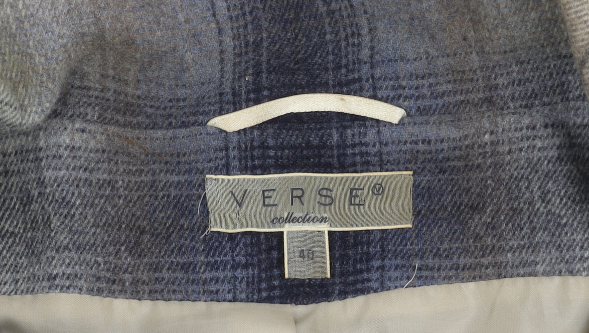 Elevate your wardrobe with this beautifully tailored women’s blazer by Verse Collection, a timeless choice for modern sophistication. Expertly crafted from a premium blend of 75% wool and 25% nylon, this versatile jacket offers warmth, structure, and enduring style. In a striking multicoloured plaid design, the blazer combines subtle tones of blue, grey, cream, and beige, making it easy to pair with both neutral and bold separates. Designed in a classic single-breasted cut with four front buttons, it features a tailored yet comfortable fit, enhanced by a regular length and long sleeves. The fully lined construction in 100% polyester ensures comfort, breathability, and smooth layering over blouses, shirts, or dresses. Clever accents such as the two flap pockets with button details and the rounded notch lapel collar lend a refined finish, perfect for professional, casual, or smart evening occasions. This versatile jacket is most flattering for the UK size 12 wearer, corresponding to the EU 40 label. Its fit is regular, ensuring a structured but not overly slim silhouette while maintaining easy mobility. Suitable for cool-weather seasons such as autumn and winter, this piece makes an excellent choice for business, workwear, or stylish casual outings. Though pre-loved, the blazer remains in very good condition, with only light signs of gentle wear and no visible flaws, making it an enduring addition to any stylish wardrobe. This wool-blend blazer will pair seamlessly with classic trousers, skirts, or even jeans, offering versatility from office to evening. Structured yet feminine, it is both practical and chic, ideal for fashion-forward women seeking wardrobe staples with elegance and refinement.
