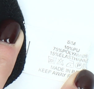Step into sleek comfort and effortless style with these Verso Women’s Black High Rise Stretch Leggings in size S/M. Designed with a modern fit that accentuates your shape, these leggings are made from a quality blend of polyamide, elastane, and polyurethane — ensuring flexibility, comfort, and durability all day long. The high waistband provides a flattering silhouette and supportive fit, making them ideal for both workout sessions and everyday casual wear.The smooth black finish gives these leggings a contemporary, understated look, perfect for pairing with your favourite gym tops, oversized shirts, or stylish hoodies. Their subtle stitched panel detailing adds a touch of biker-inspired flair, while the stretchy, elasticated waist allows for maximum movement whether you're at the gym, on a run, or simply lounging in comfort. They are also machine washable for easy care, keeping them practical as well as stylish.Perfect for yoga, gym and training, or even relaxed urban dressing, these Verso leggings are a versatile wardrobe staple. The durable fabric blend ensures they hold their shape beautifully and offer a snug yet breathable feel. Light creasing from storage is visible but does not detract from the overall great condition of the item.Bringing together comfort, quality, and style, these Verso leggings are made for women who want to look effortlessly put-together while staying active. Embrace a flattering fit that moves with you in every direction and enjoy timeless sophistication in a pair of leggings as versatile as they are stylish.
