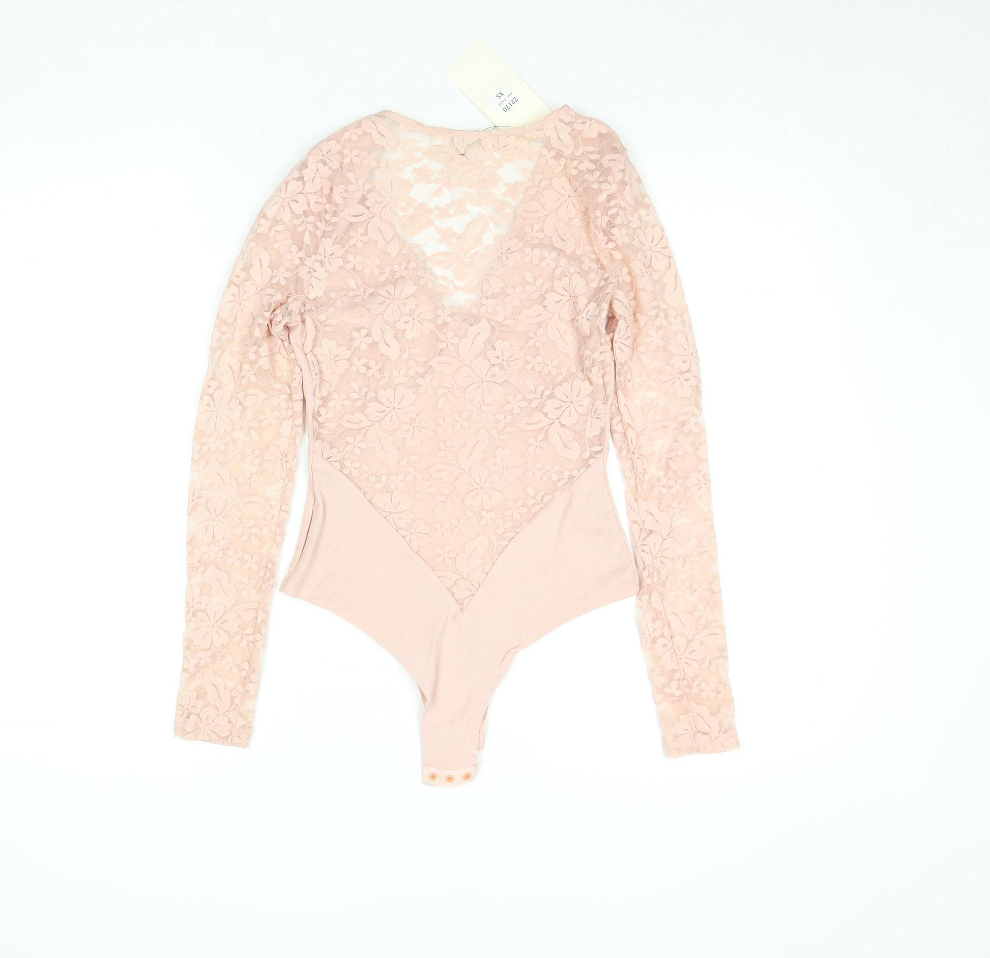 ZARA Women Pink Ribbed Long Sleeve Bodysuit Size Small