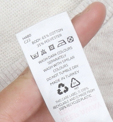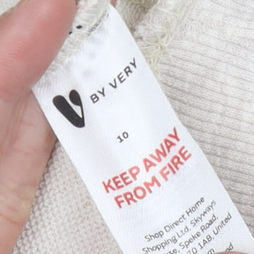 Enhance your wardrobe with this elegant beige V-Neck sweatshirt from Very, designed exclusively for women. Crafted from a soft blend of 65% cotton and 35% polyester, this pullover offers both comfort and style, making it a perfect choice for casual occasions. The jersey fabric lends a smooth touch, while the regular fit ensures easy movement throughout the day. Featuring long sleeves, this sweatshirt is ideal for all seasons, keeping you cosy without compromising on style. The neckline accentuates femininity with its gentle V-shape, adding a chic flair to your ensemble. Whether you're heading out for a stroll or just relaxing at home, the versatility of this piece makes it a must-have addition to your clothing collection. Machine washable, it's easy to care for, retaining its shape and colour after each wash. Embrace the simplicity and elegance of this timeless piece, suitable for everyday wear while effortlessly enhancing your overall look. Don't miss out on this staple item, priced at £10.00, reflecting excellent condition with no visible wear. Ideal for those seeking comfort without sacrificing style.
