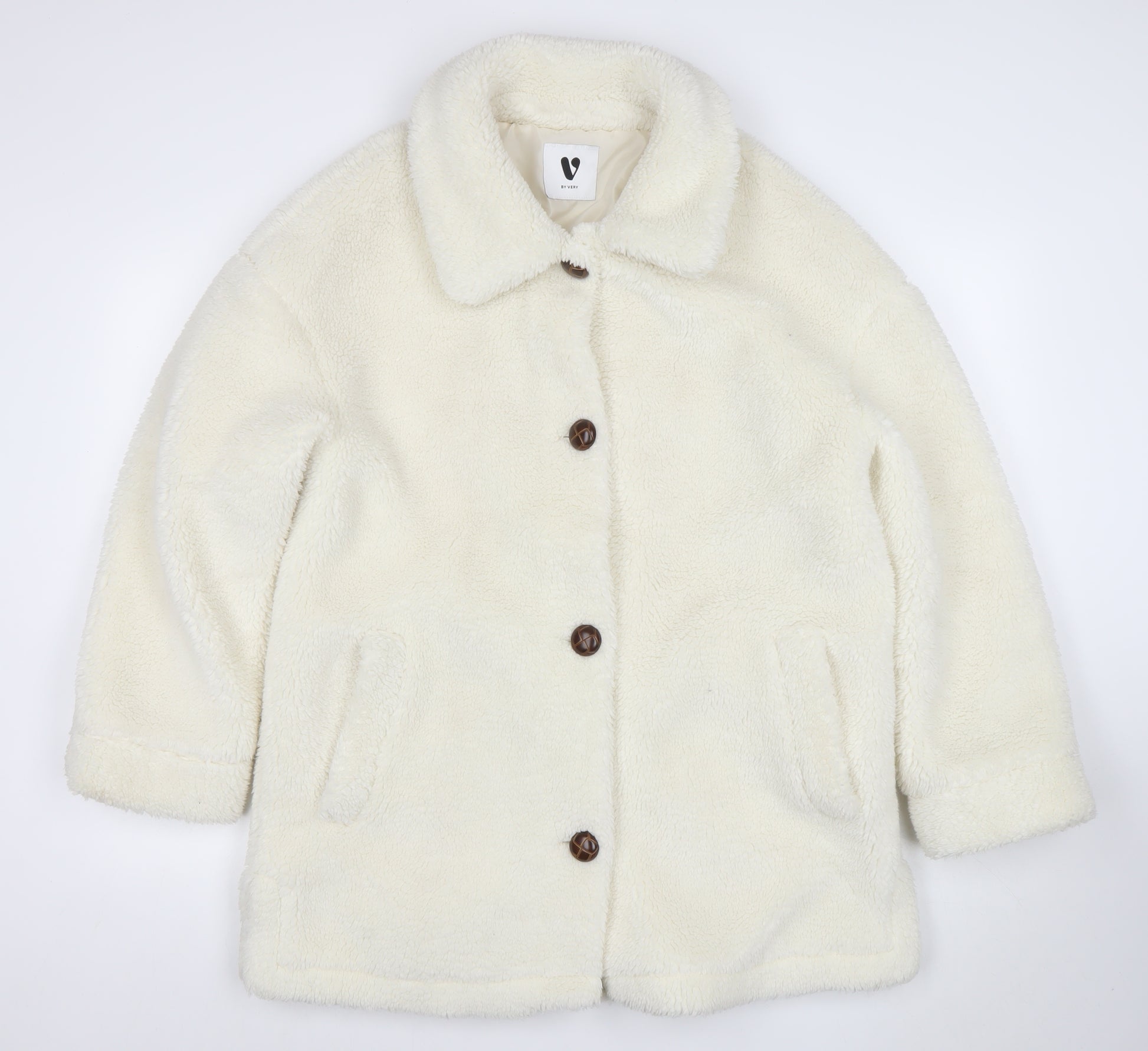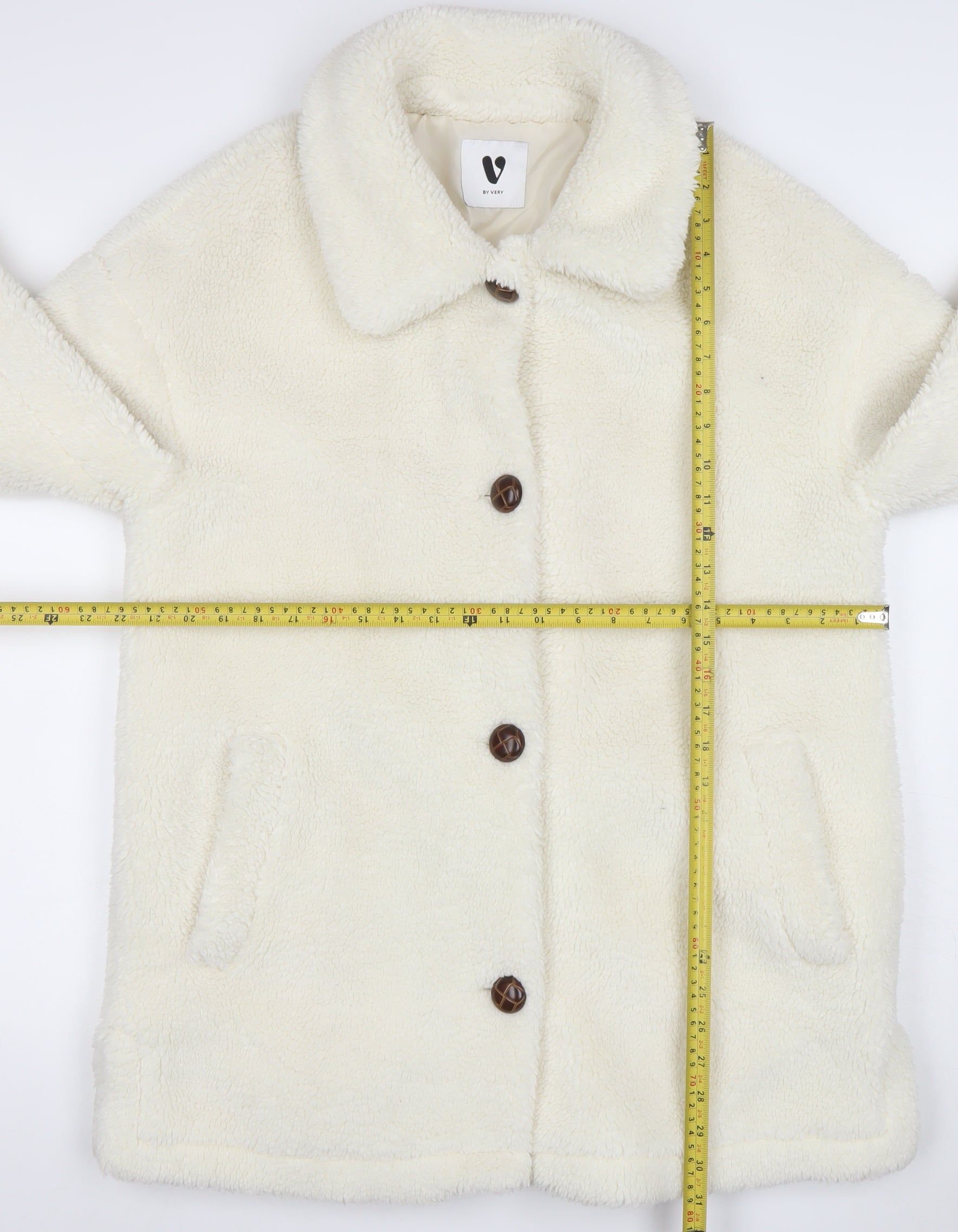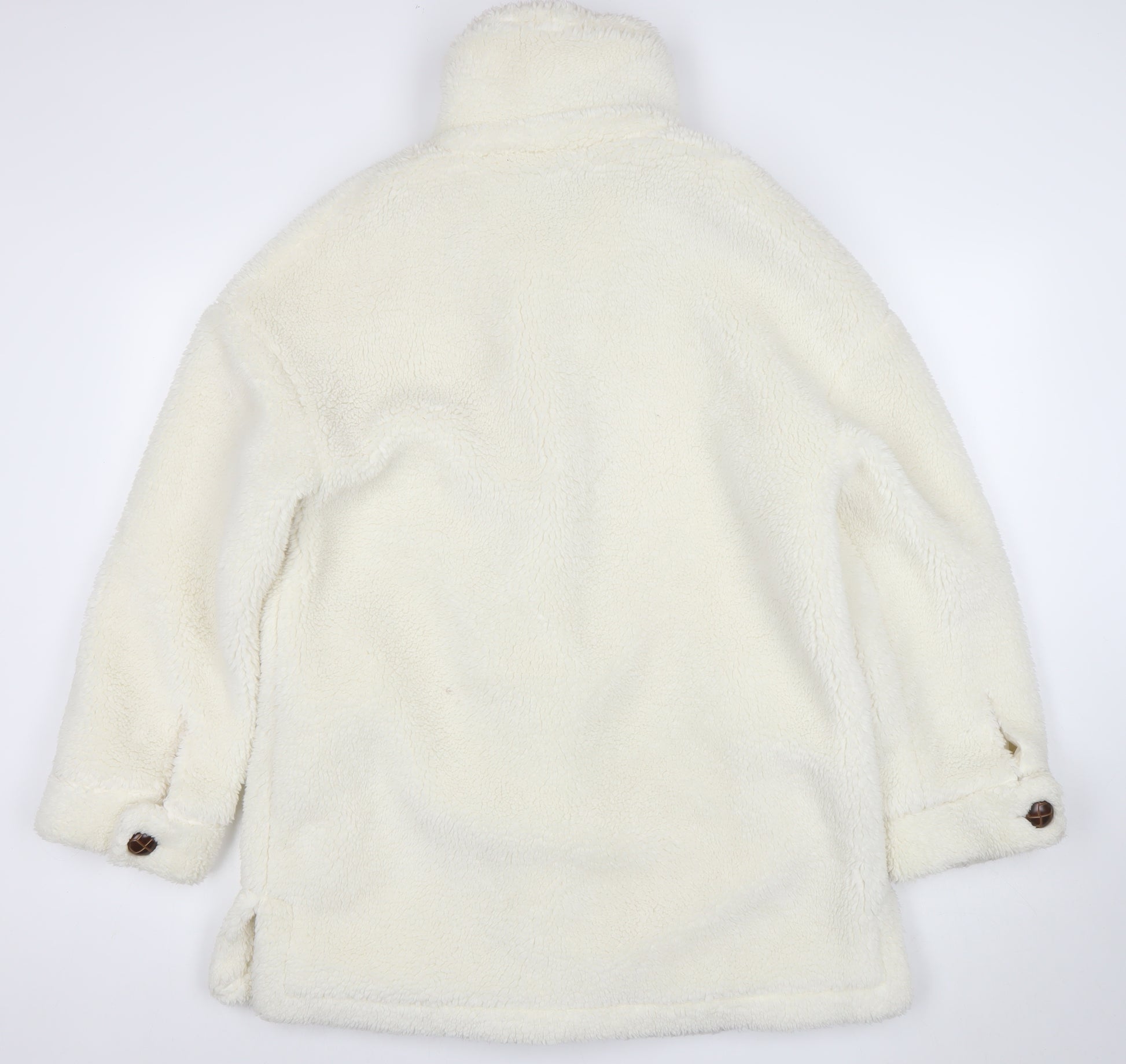 Women Ivory Fleece Button Coat Size 14 Winter Classic