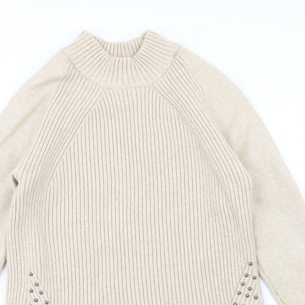 Womens Beige High Neck Viscose Pullover Jumper Size 12