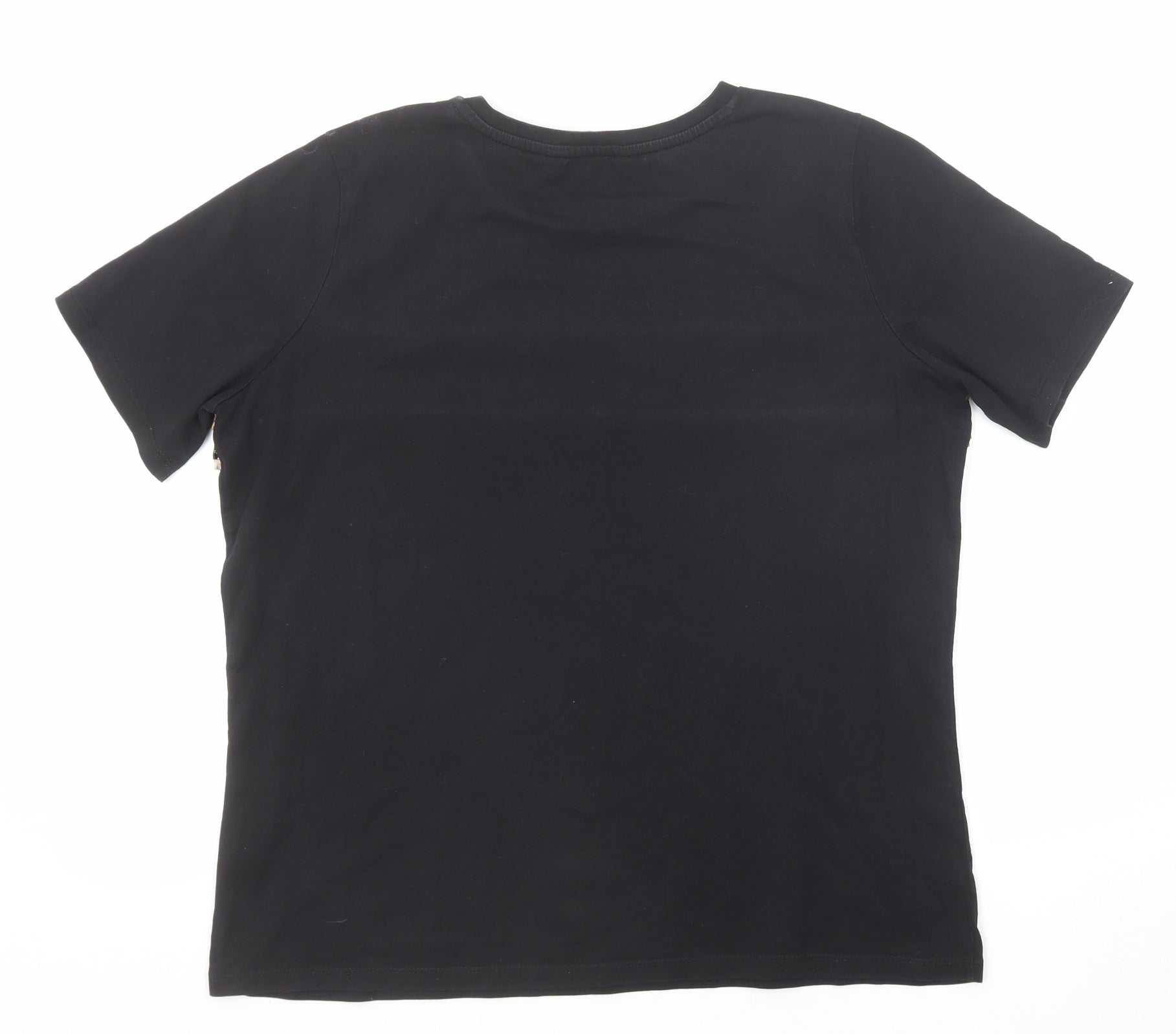 Womens Black Animal Print Cotton Basic T-Shirt Size 14 Crew Neck